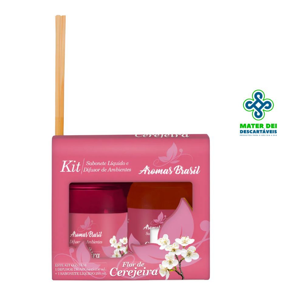 Kit Difusor de Ambiente E Sabonete Líquido Aromas Brasil 250ml Aromatizador Cheiro Casa com Varetas