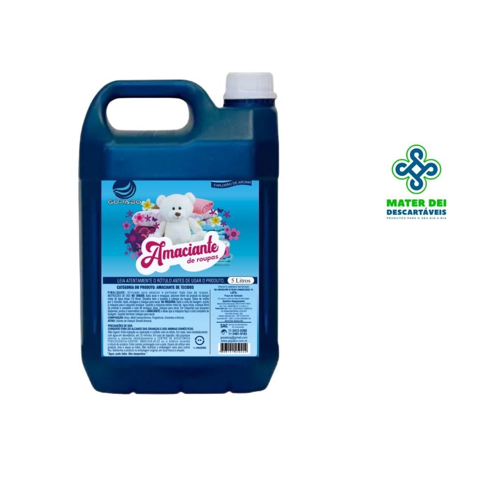 Amaciante Concentrado Azul 5 Litros Gopabo Roupas Macias Cheirosas Toque Suave Lava Roupas Soft