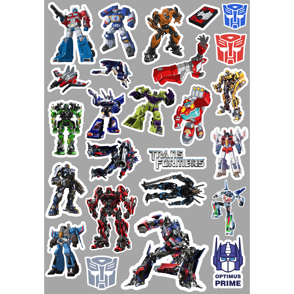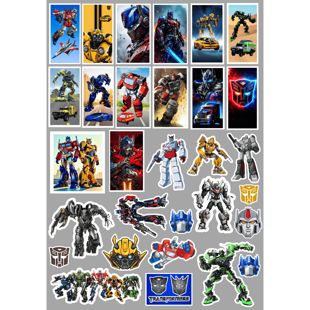 🤖 Cartela 50 Adesivos Transformers – Autobots vs Decepticons – 4 a 6cm – Brindes, Scrapbook, Lembrancinhas