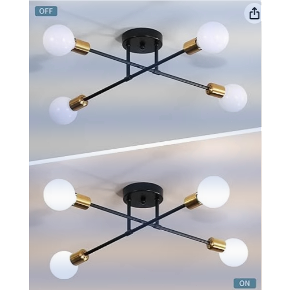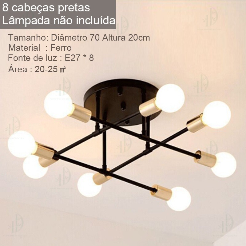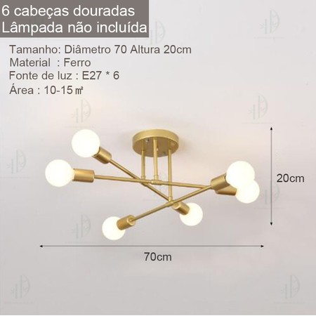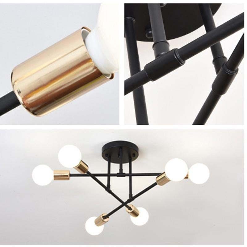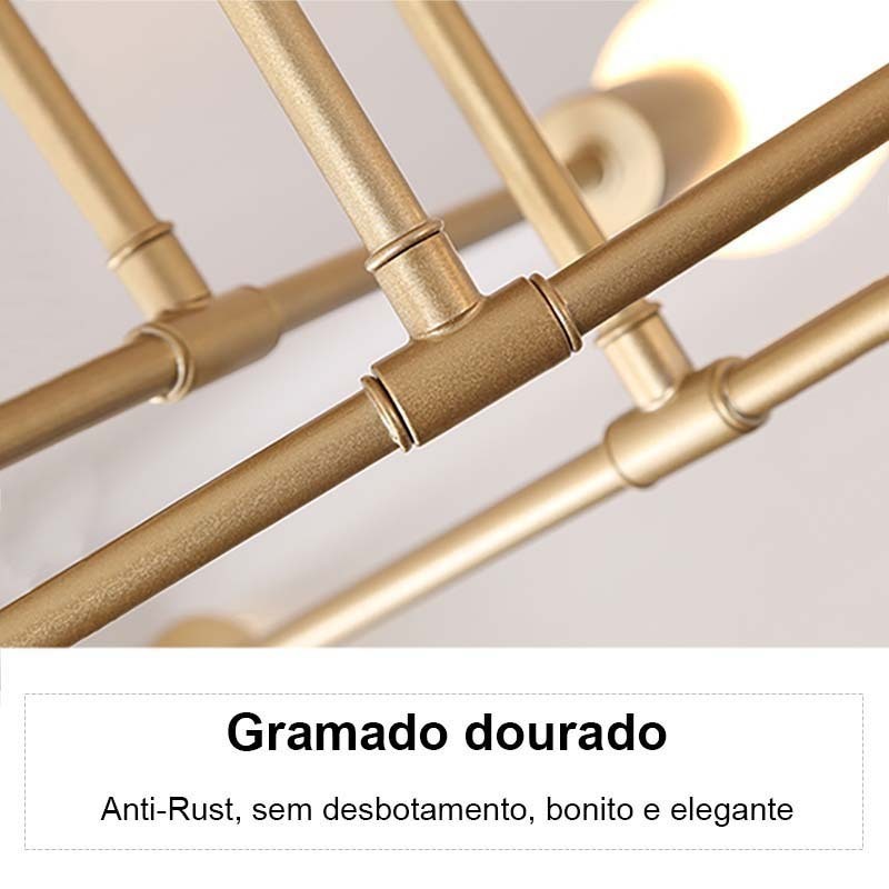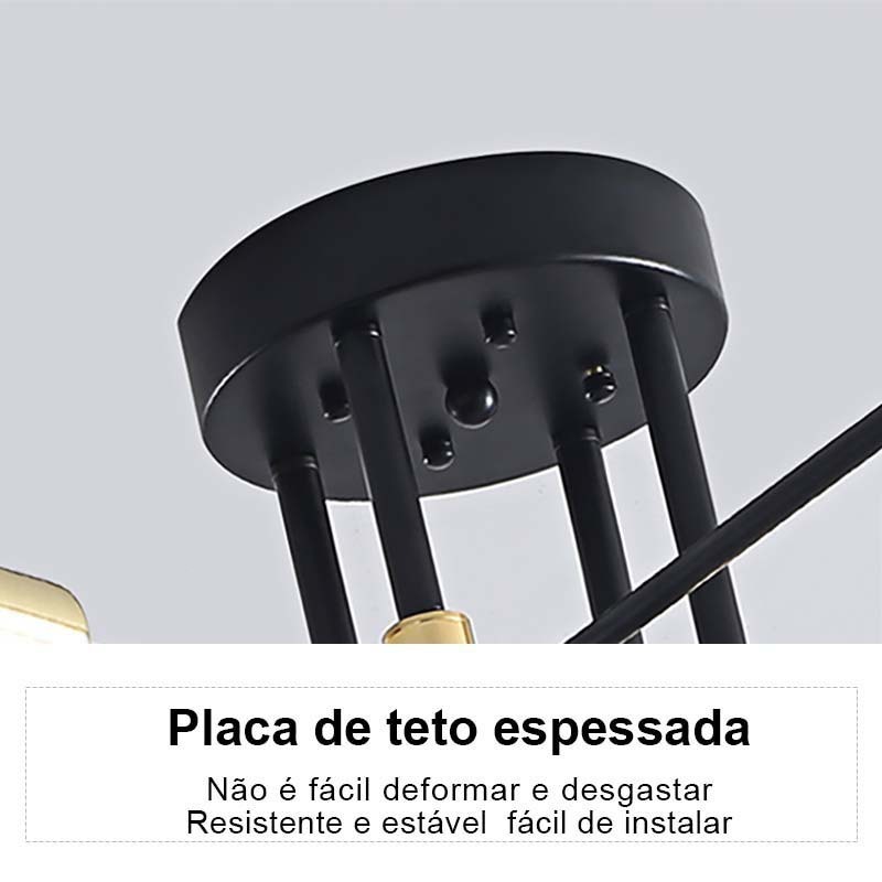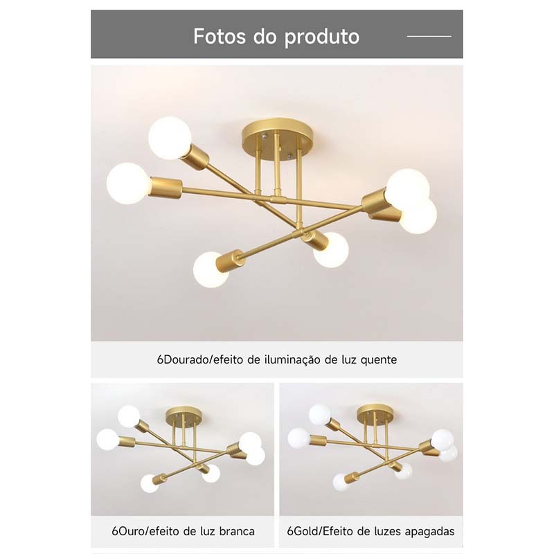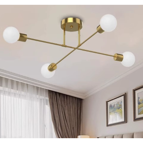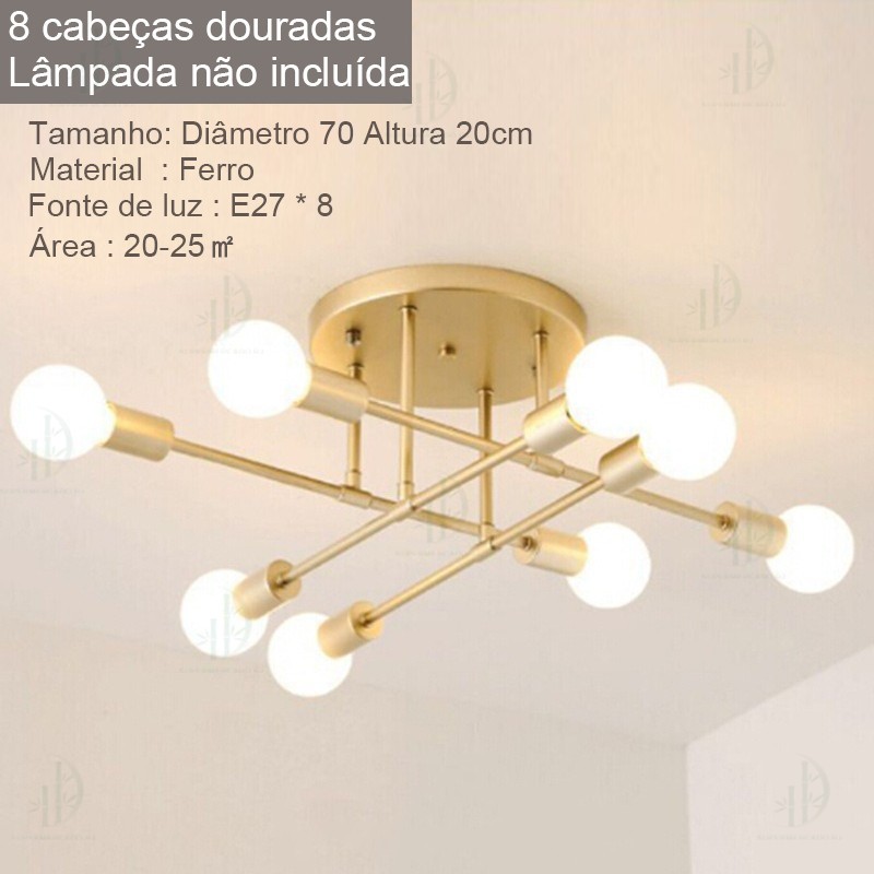 Lustre moderno semi-embutido, iluminação nórdica antiga dourada, adequado para sala de estar, sala de jantar