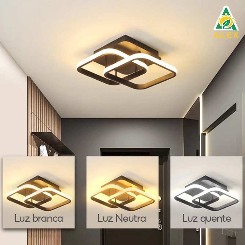 Lustre Luminária de Teto Plafon Sobrepor Quadrado Moderna 3 em 1 para quarto, sala, escritorio, corredor, cozinha