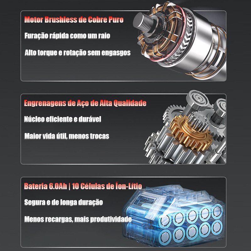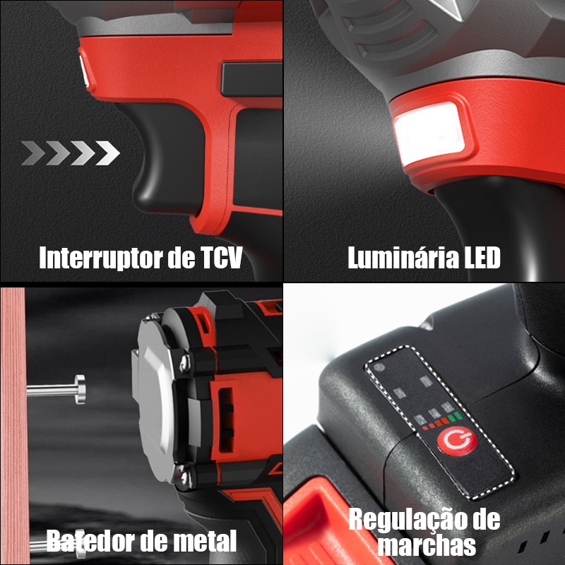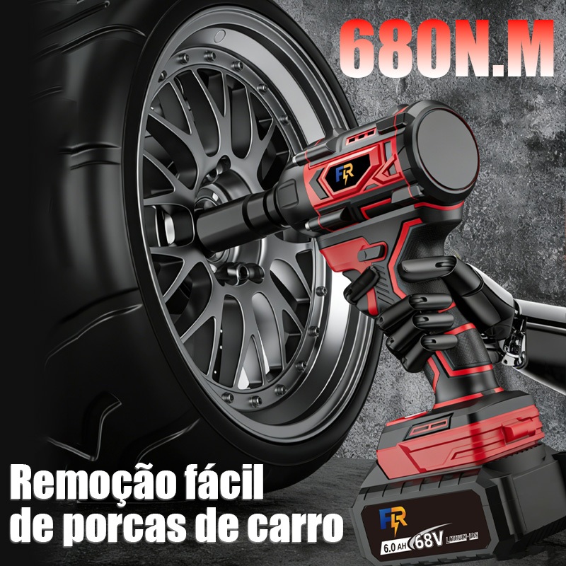 Chave de Impacto Elétrica Sem Fio Com 68V Bateria Motor Brushless Kit Completo Acessórios