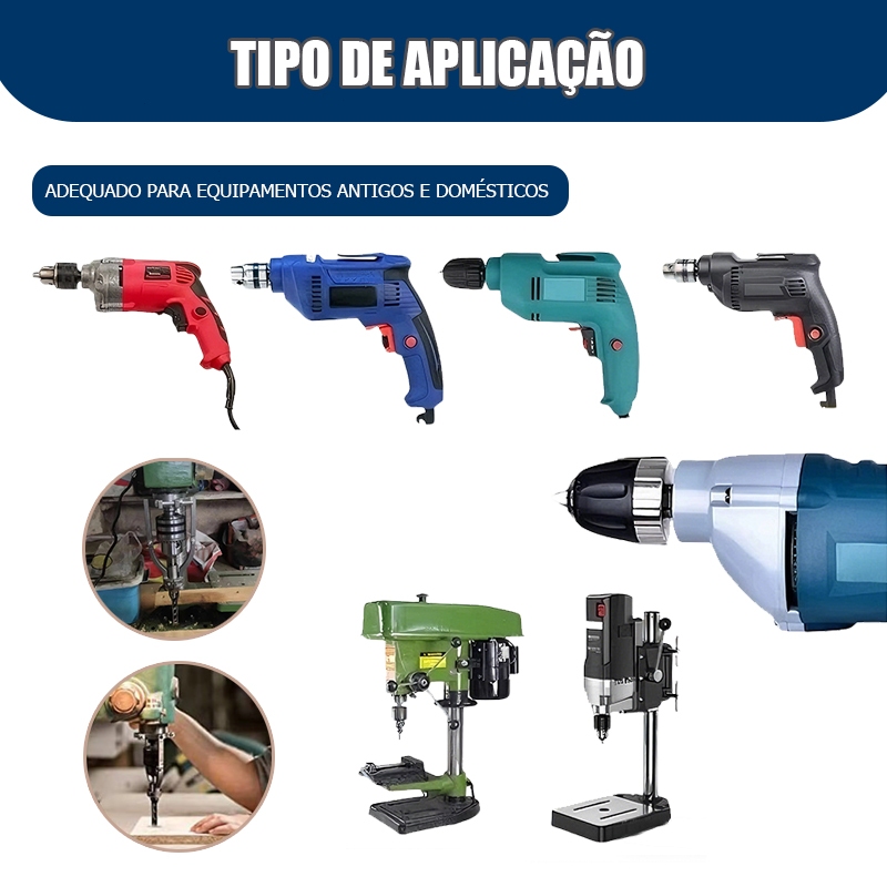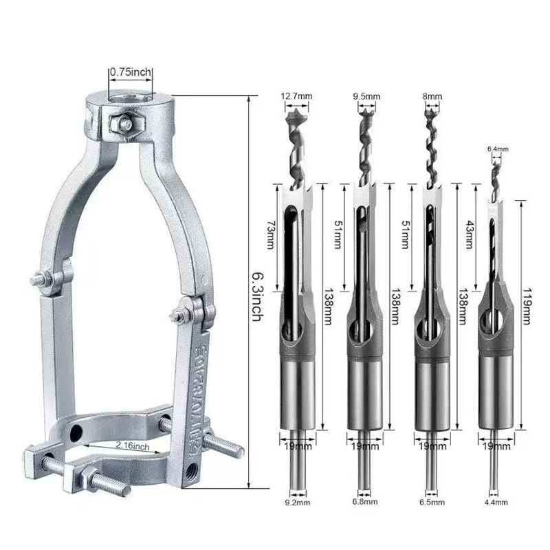 Kit Adaptador e Brocas Furo Quadrado 4 Peças 1/4 5/16 3/8 1/2 para Furadeira Bancada Madeira
