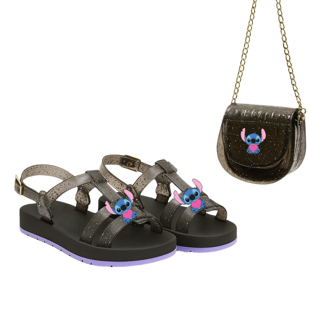 Kit Sandália Infantil Menina Stith com Bolsinha Elegante Confortável e Delicada - Rosa, Preto, Azul, Lilás, Branco