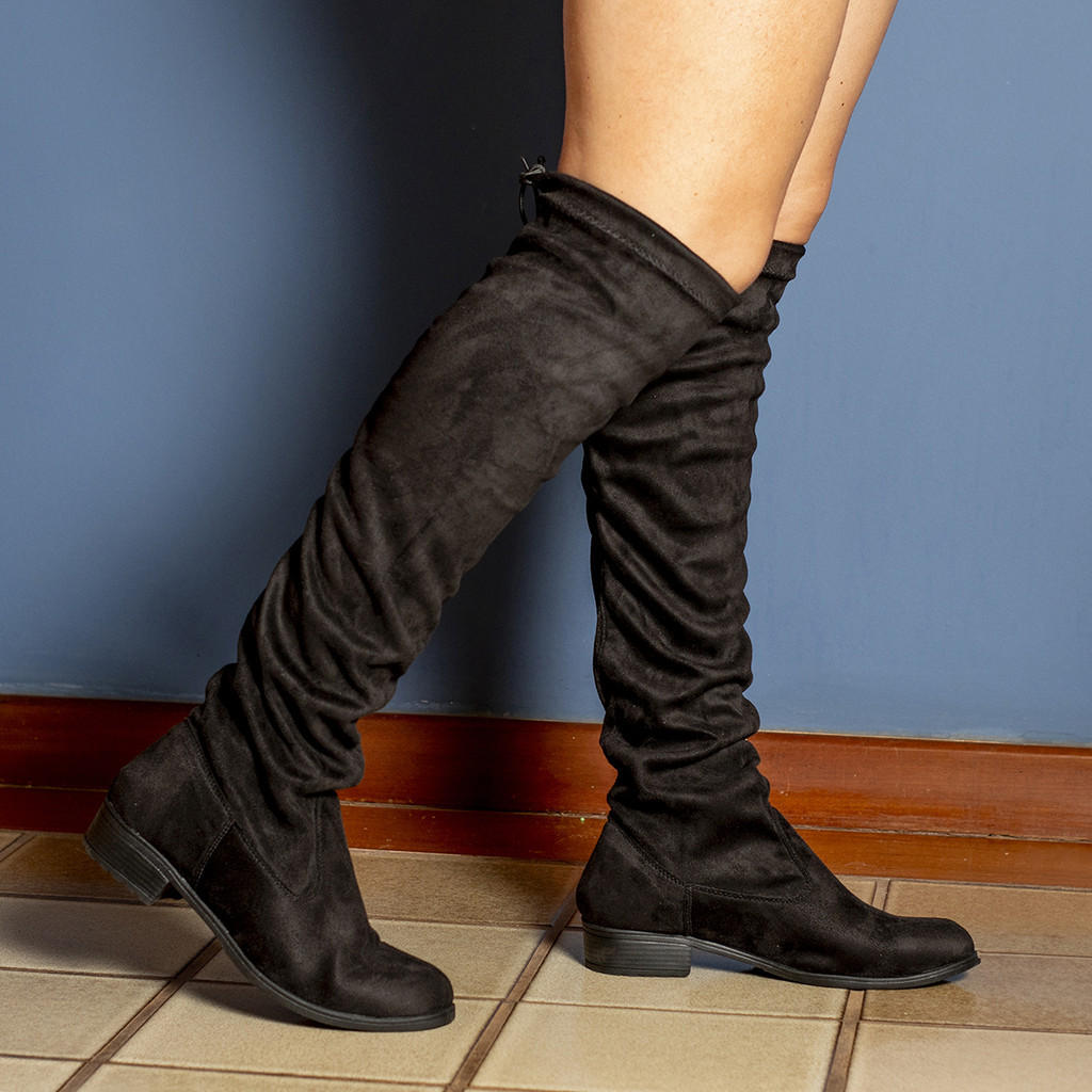 Bota Over The Knee Paris Camurça Montaria Feminina Acima Do Joelho Sem Salto Camurça Original