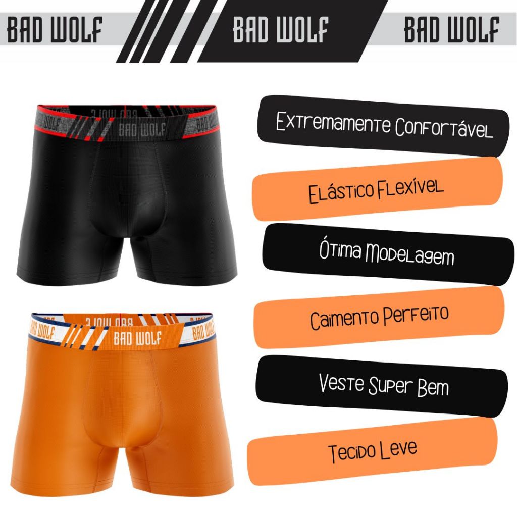 KIT Cuecas Boxer Microfibra Adulto Bad Wolf Combat.