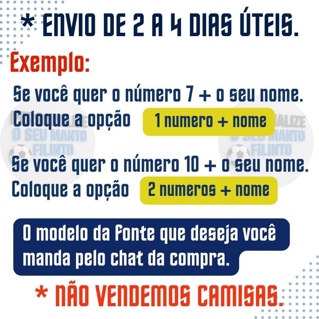 Sob encomenda: envio após 5 dias da compra