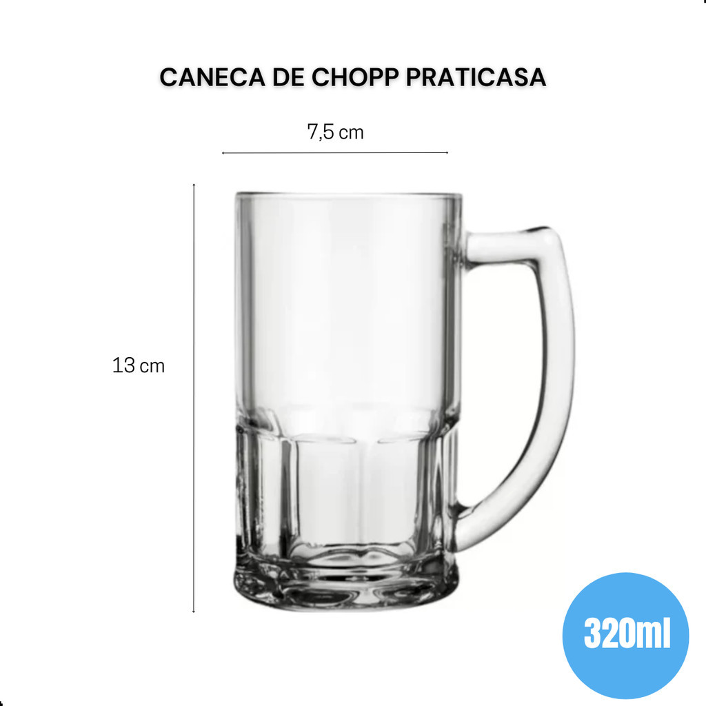 Kit 6 Canecas de Vidro Resistente 330ml 🍺 Para Cerveja, Chopp, Drinks e Bebidas Geladas