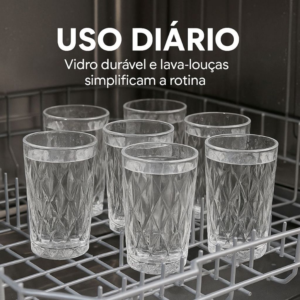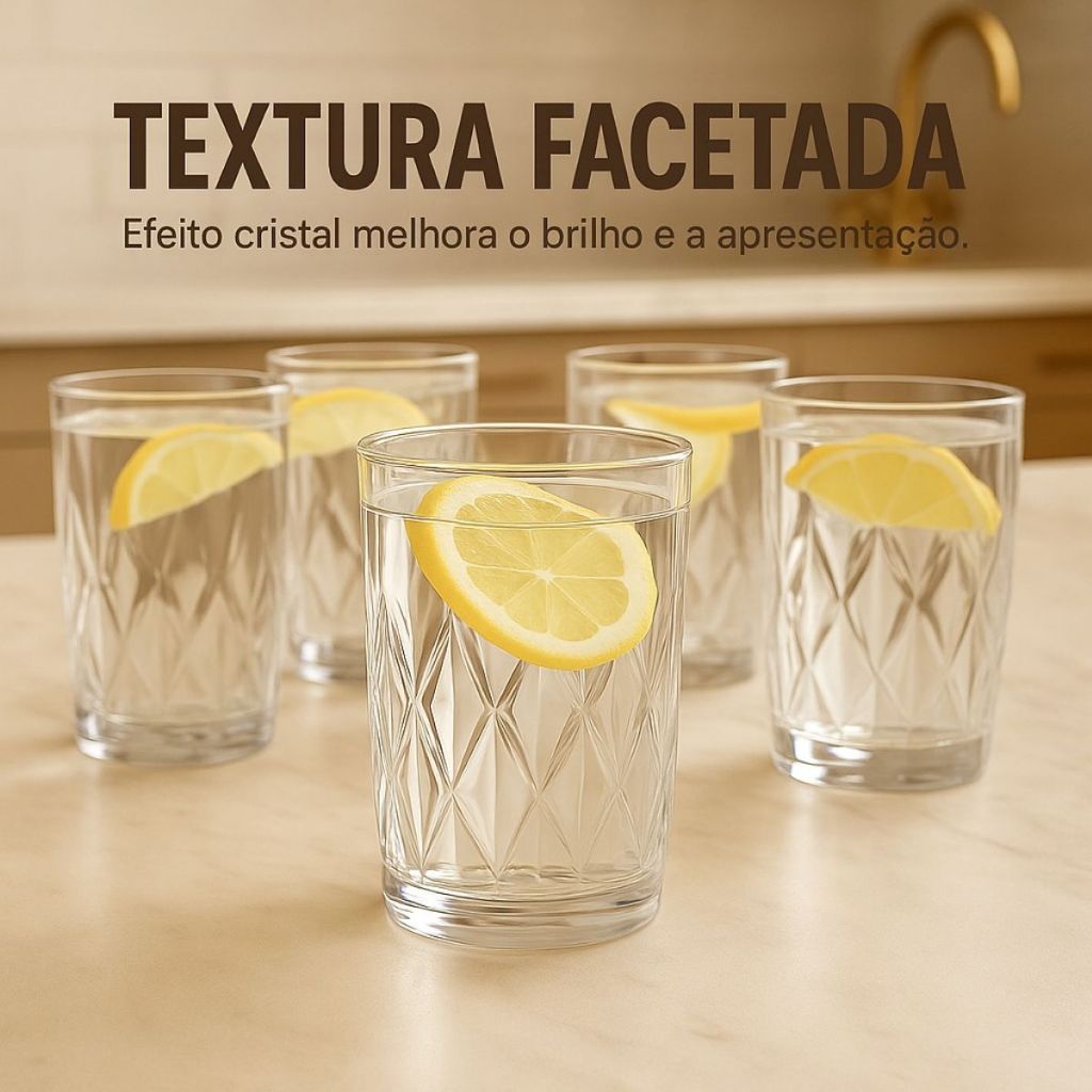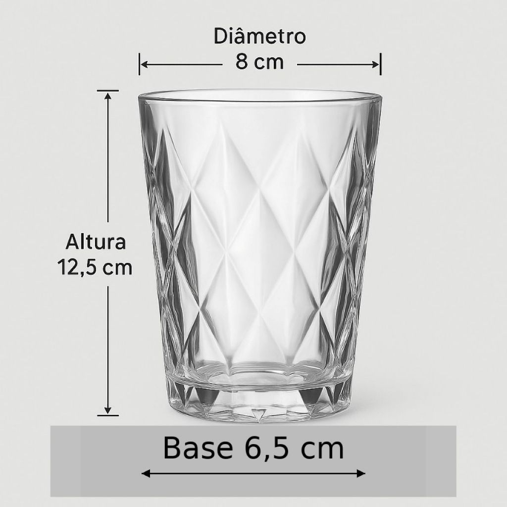 Jogo 6 Copos Vidro Diamond 400ml Água Suco Cerveja Elegante