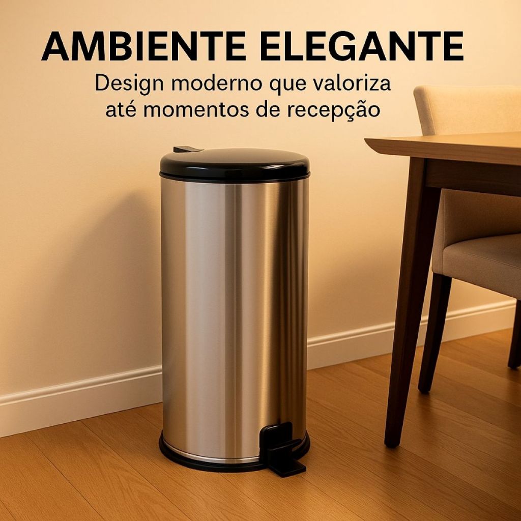 Lixeira Inox 20l Pedal Tampa Antiodor Cozinha Banheiro Preta Preto