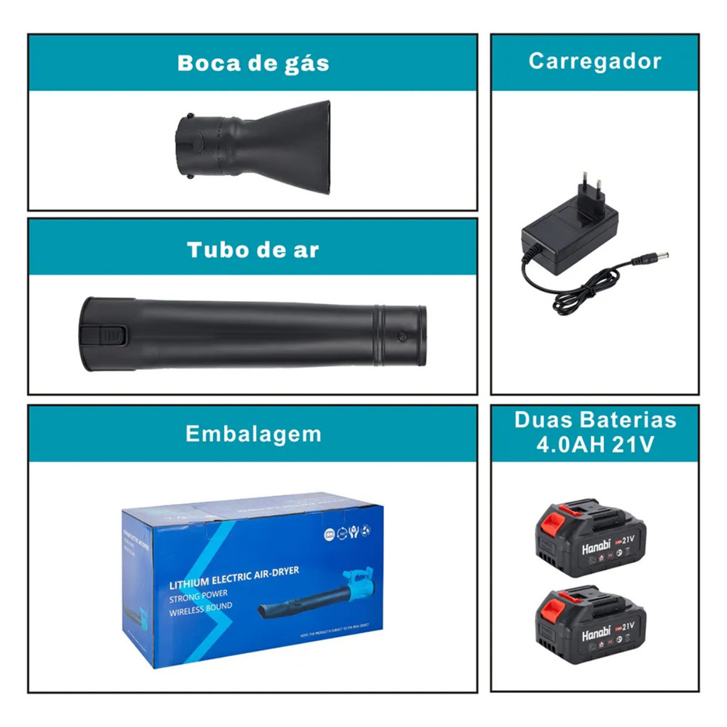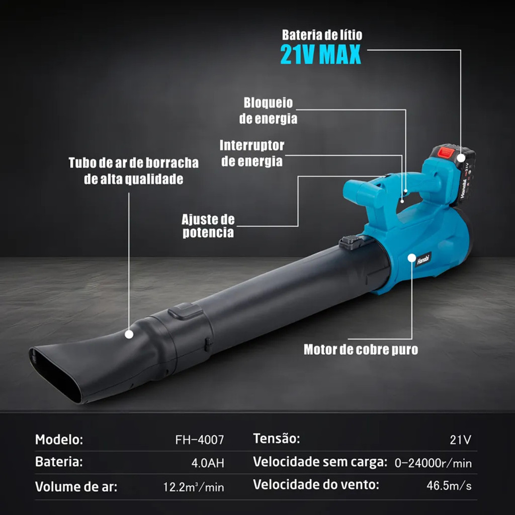 Soprador De Folhas Elétrico Portátil 2 Baterias 1500MA 4A