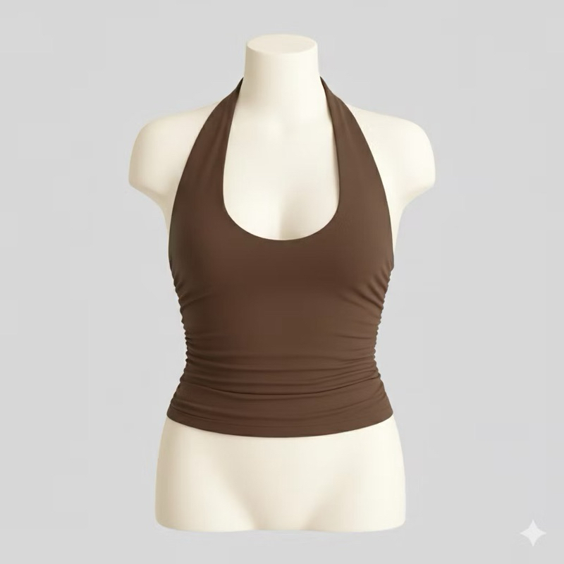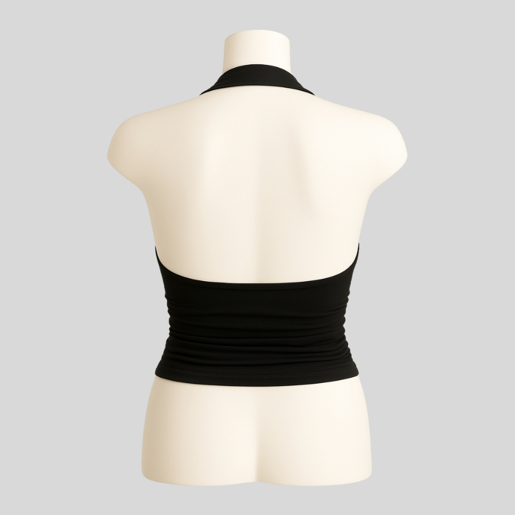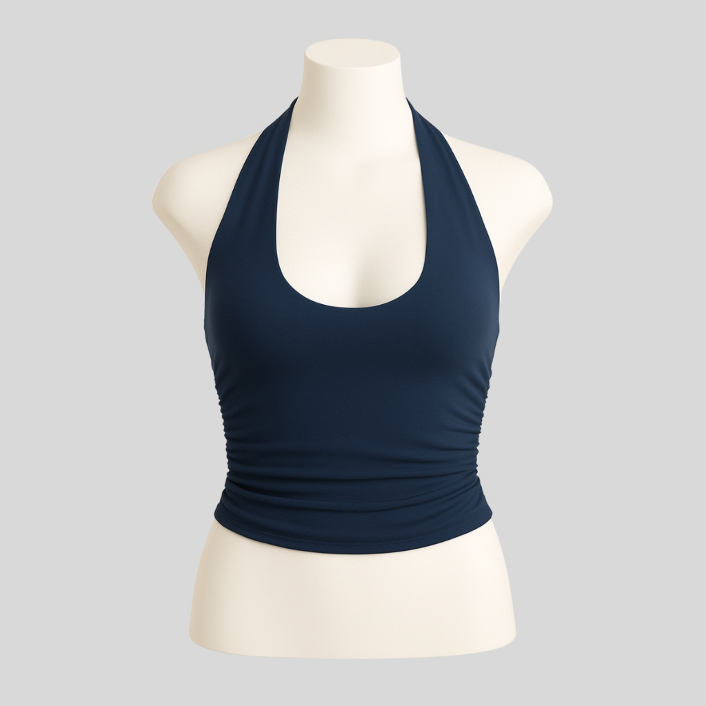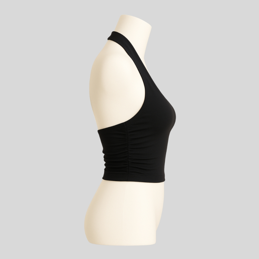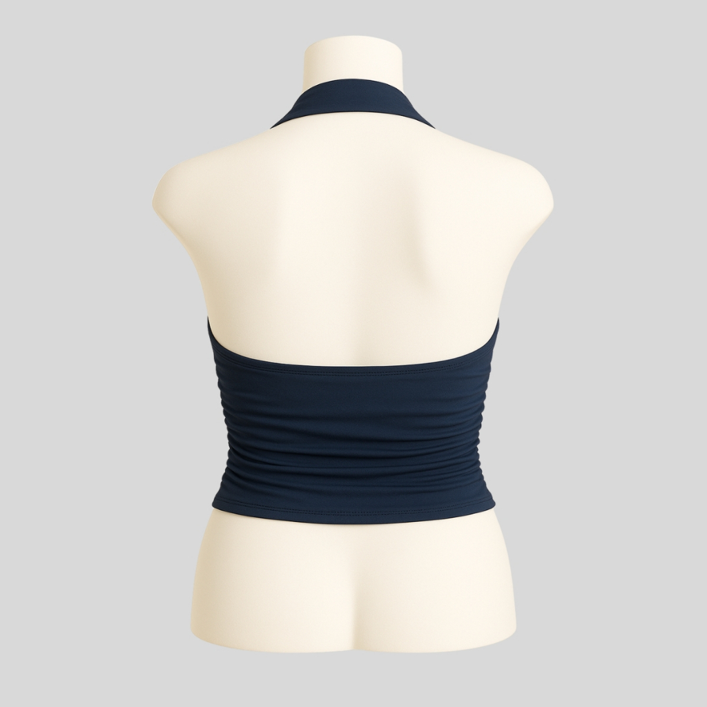Top Cropped Feminino Frente Única Costa Nua Justo Franzido na Lateral com Forro no Busto