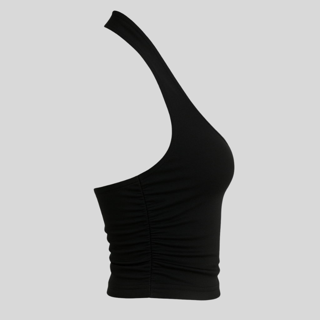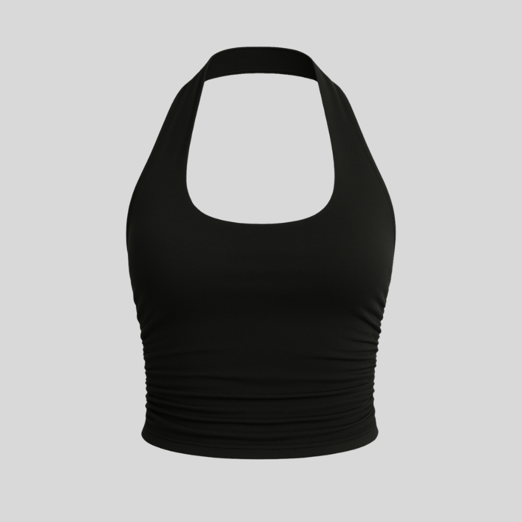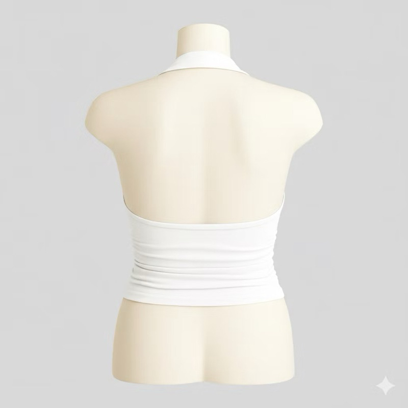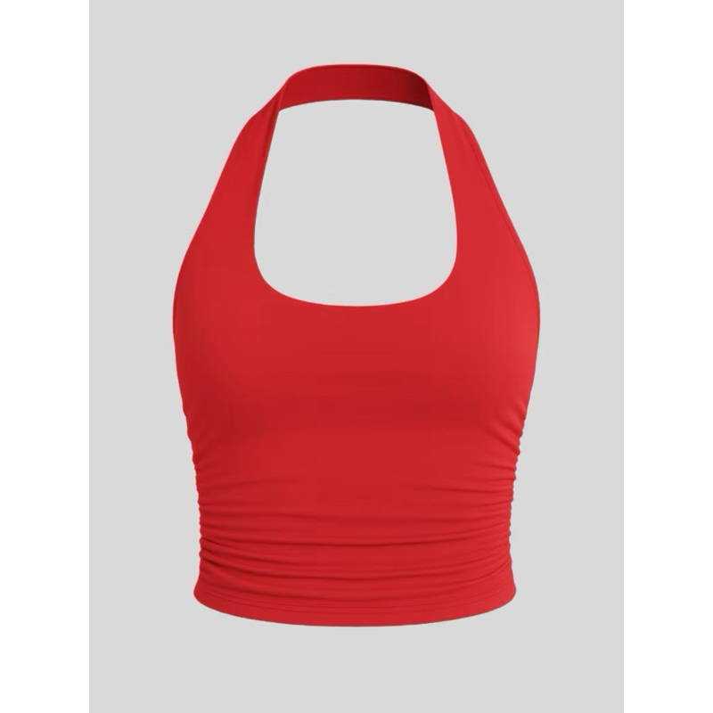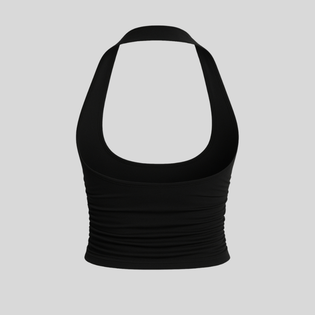 Blusa Cropped Feminino Frente Única Franzido Ajustado com Costas Nua