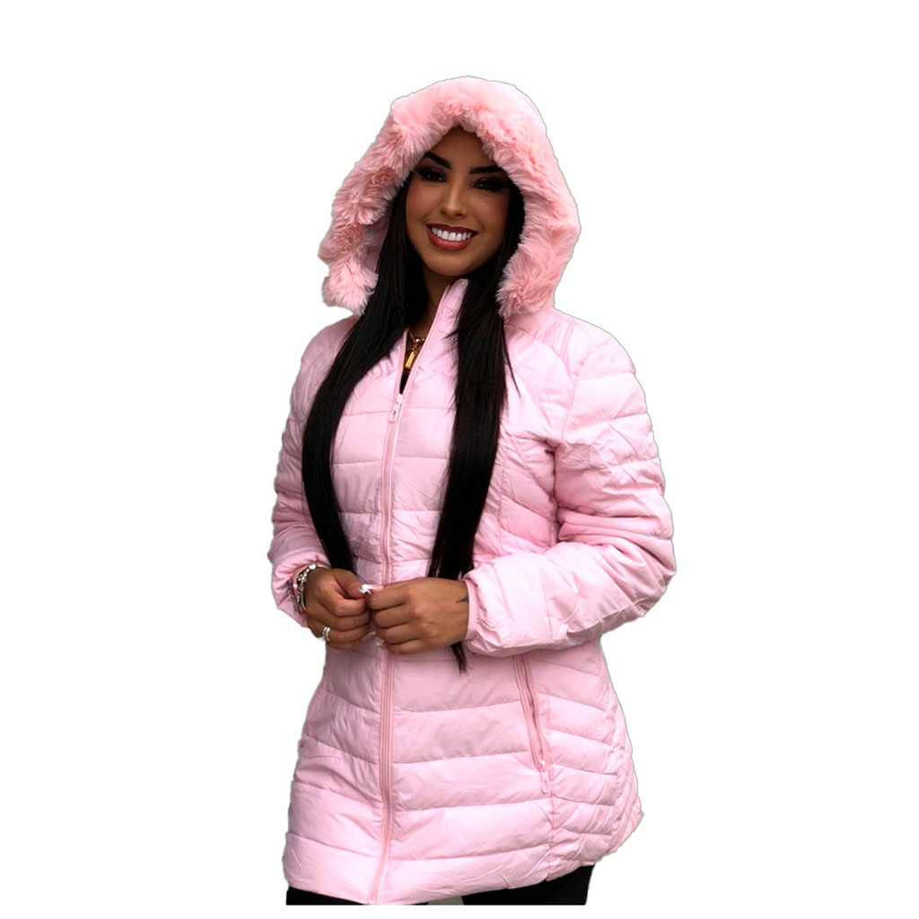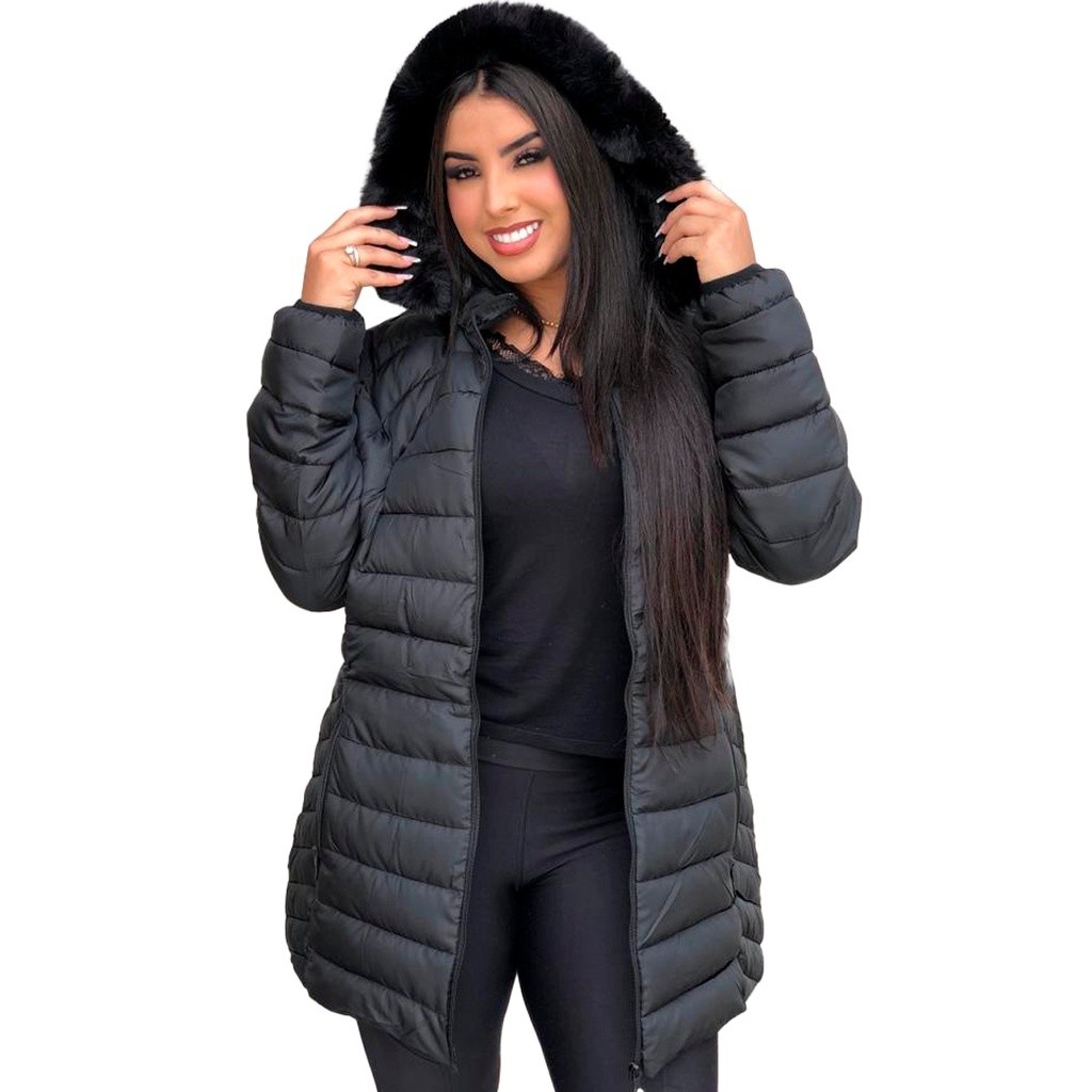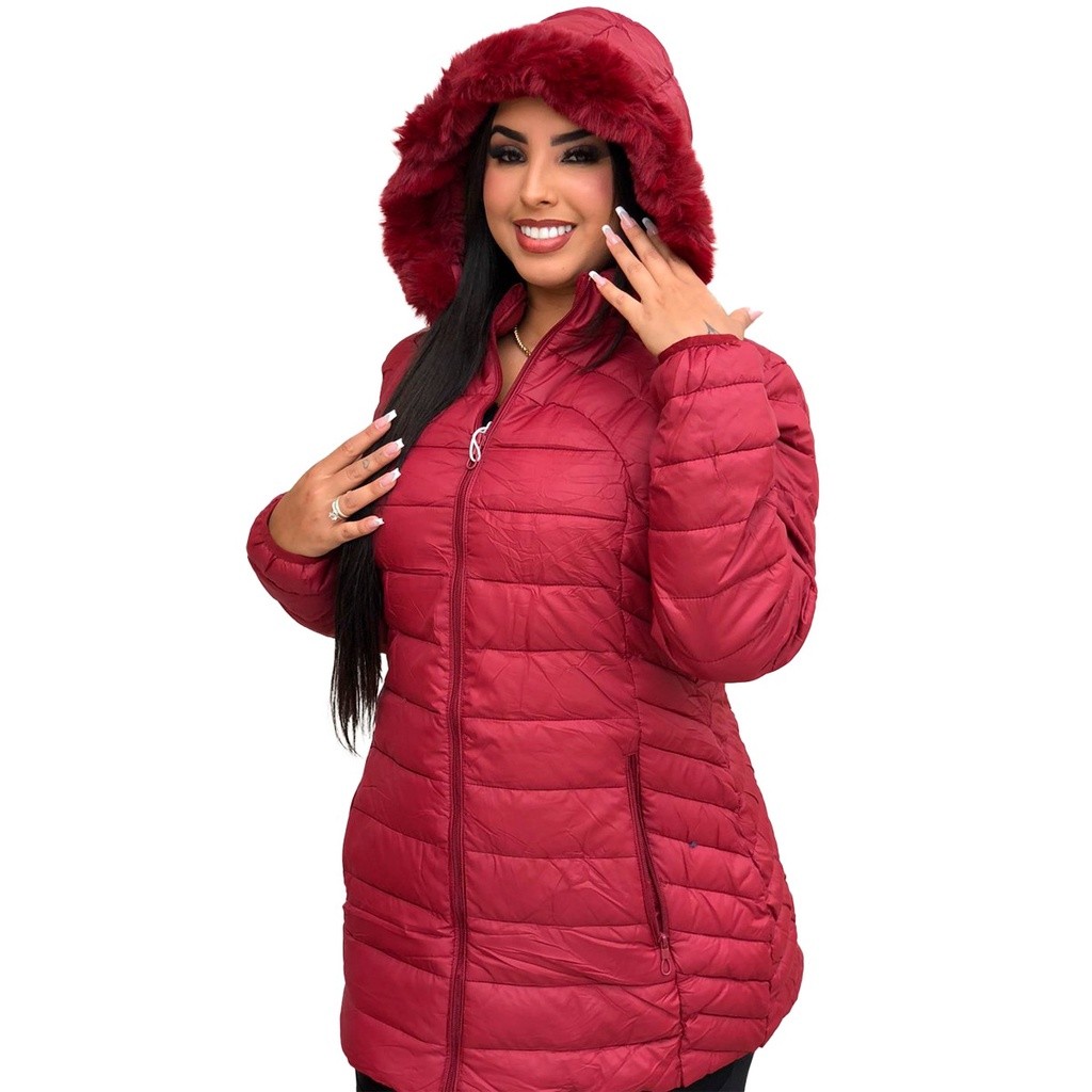 Linda jaqueta feminina Nylon Plus Size acinturada , ziper capuz removível inverno frio moda linda