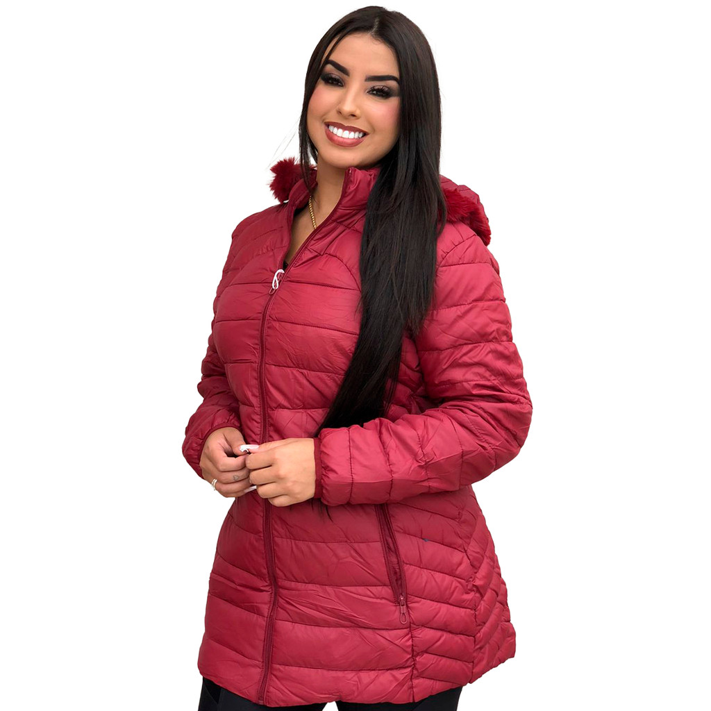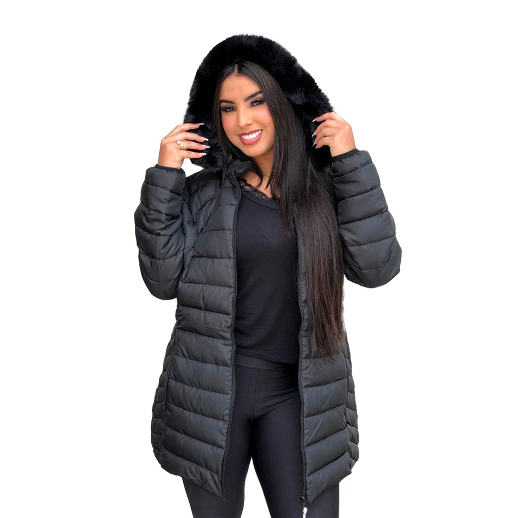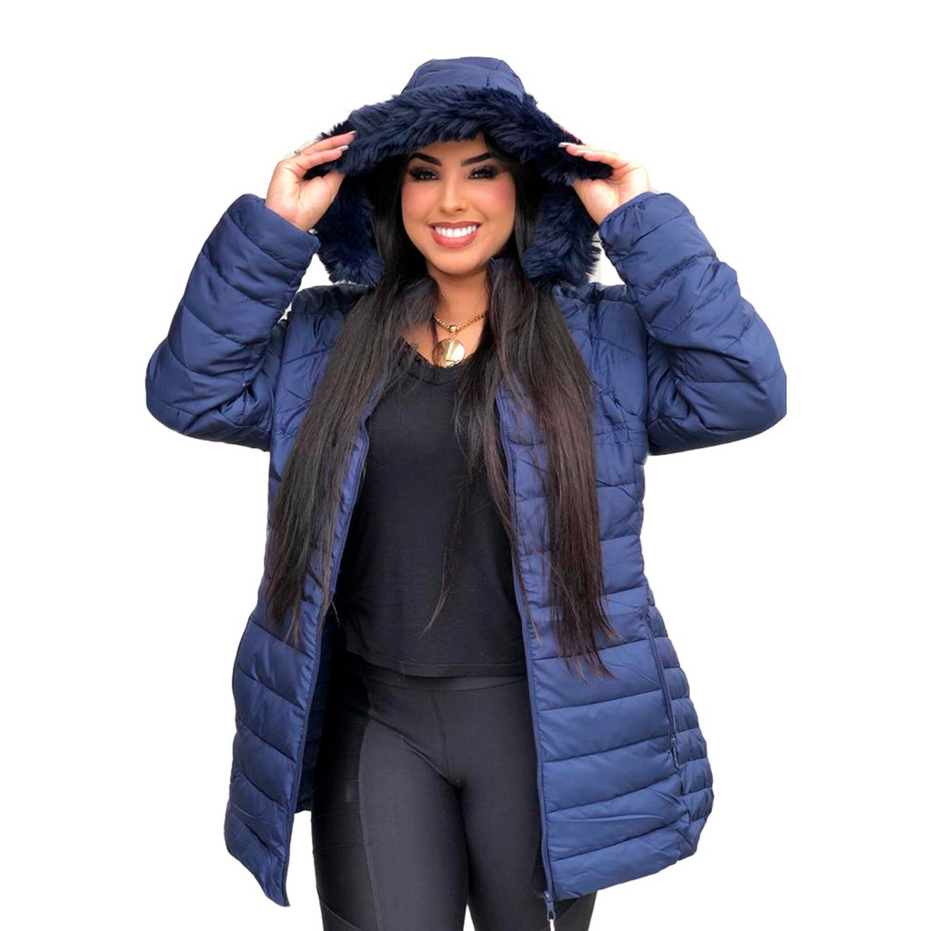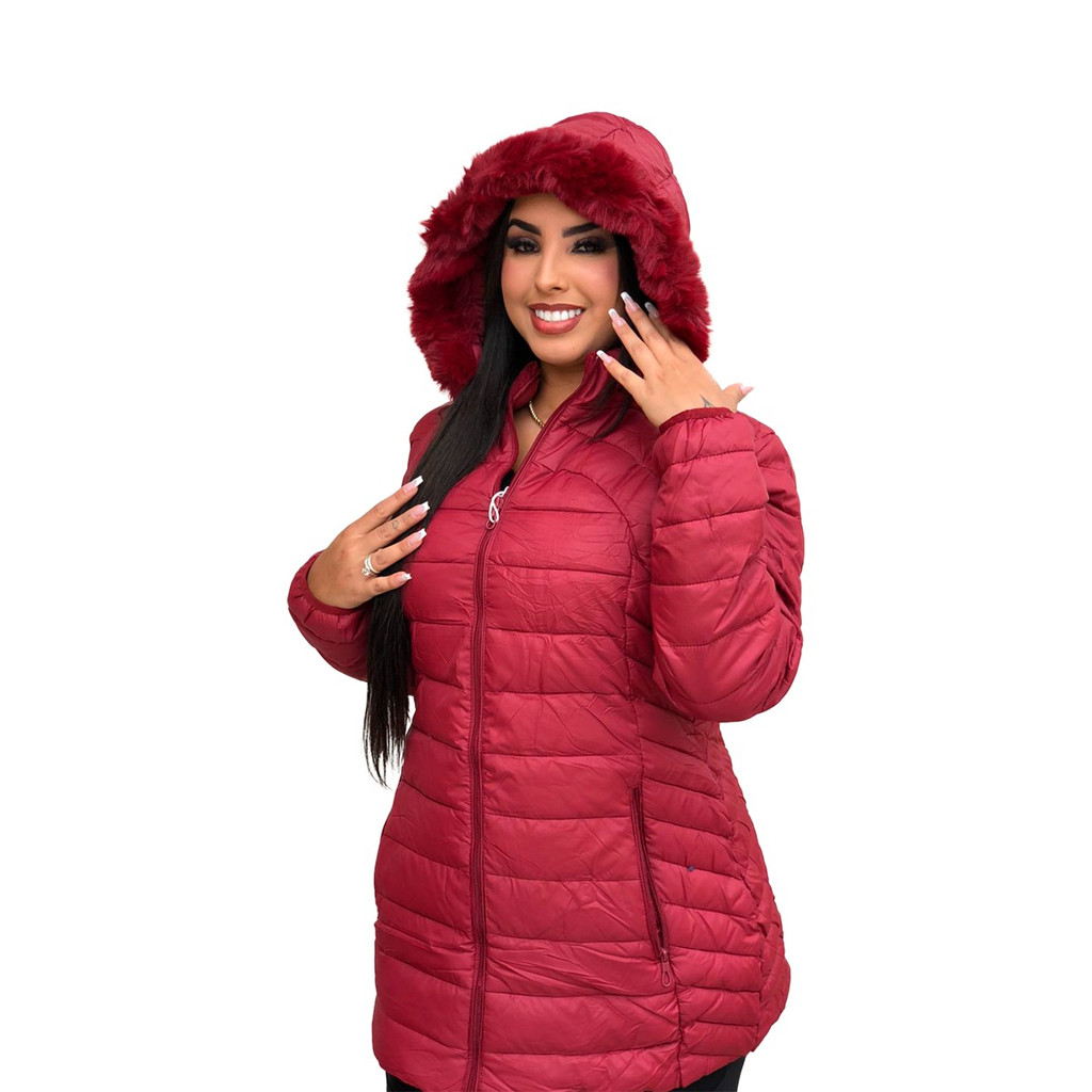 Linda jaqueta feminina Nylon Plus Size acinturada , ziper capuz removível inverno frio moda linda