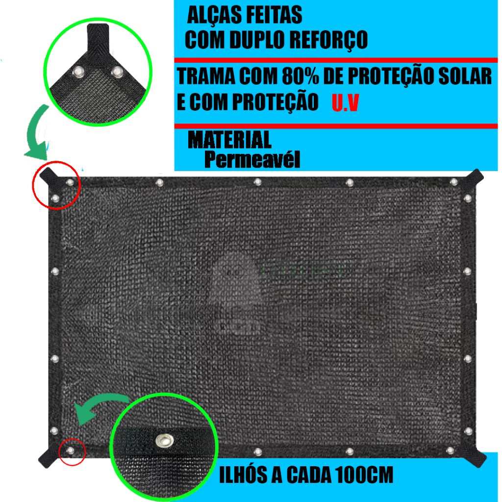 Tela Sombreamento 80% Garagem Piscina 2x1 Ilhós Acabamento Reforçado
