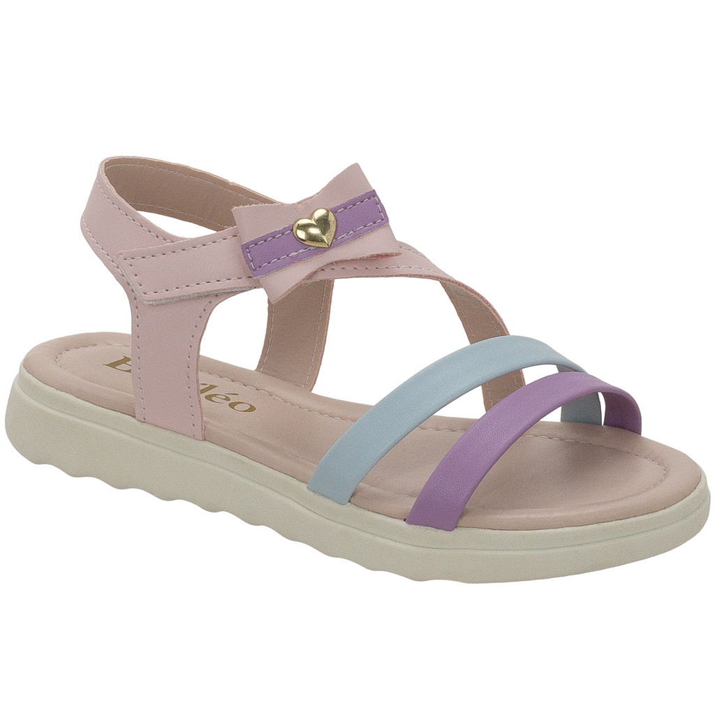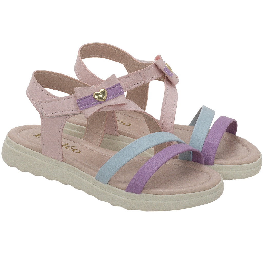 Sandália Infantil Feminina com Laço e Coração – Tiras Coloridas e Conforto para o Dia a Dia