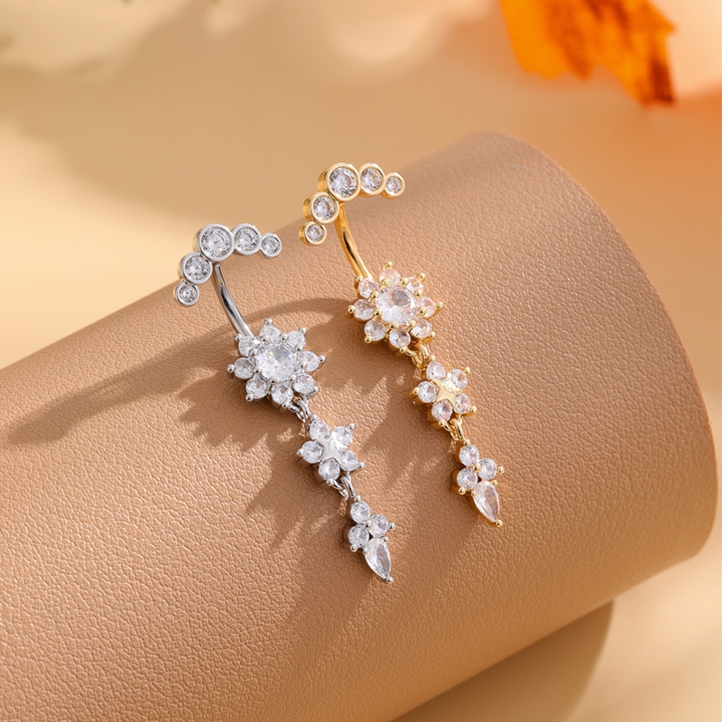 1 Peça Piercing de Umbigo de Zirconia Floral Longo com Pingente Aço inoxidável Dia Da Deusa