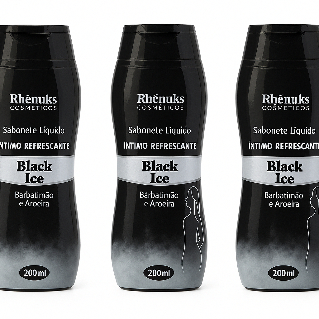 Kit 3 Sabonetes Íntimos 200ml | Black Ice Rhenuks | Frescor Intenso e Higiene Íntima com pH Balanceado
