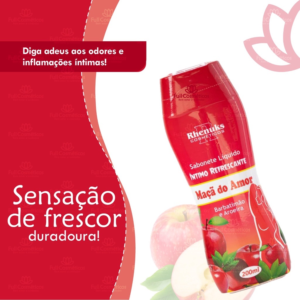 Kit 3 Sabonetes Íntimos 200ml | Maçã do Amor Rhenuks | Higiene Íntima com Fragrância Doce e Refrescante