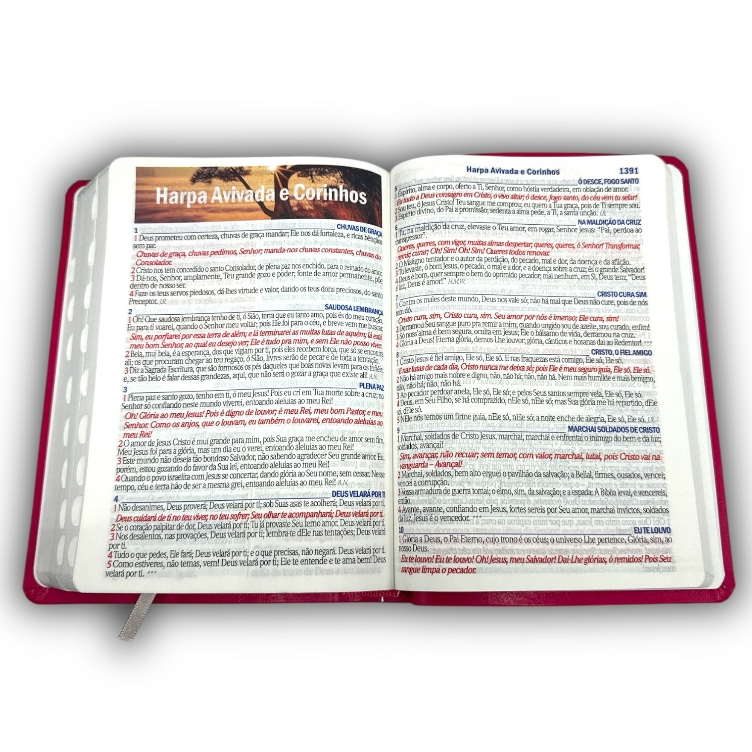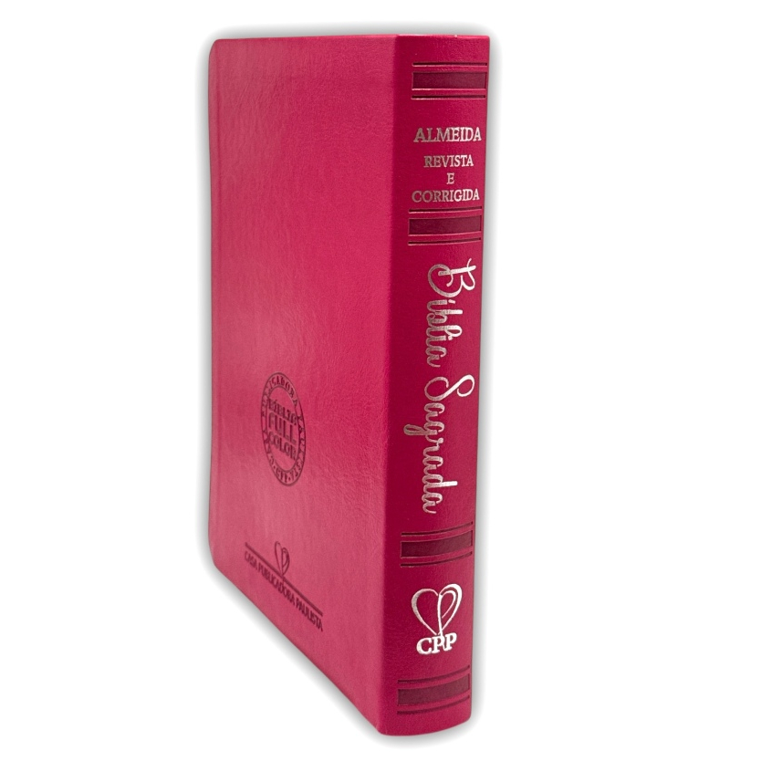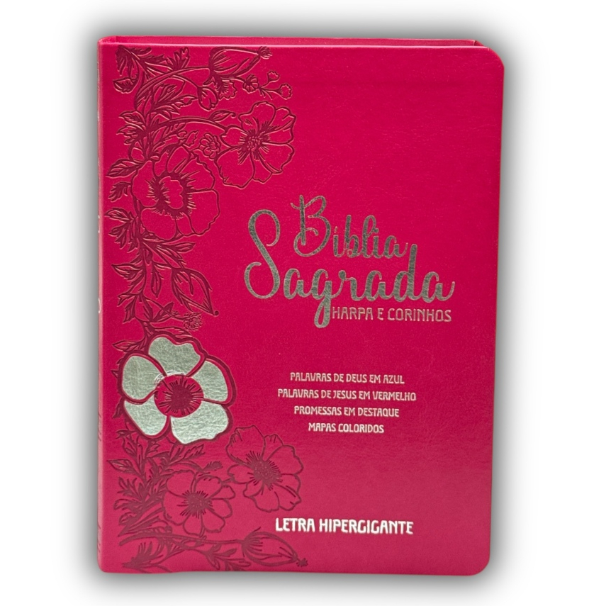 BÍBLIA L. HIPERGIGANTE ARC FULL COLOR PU LUXO C/ HARPA C/ ÍNDICE PRATEADA FLORAL DÁLIA PINK