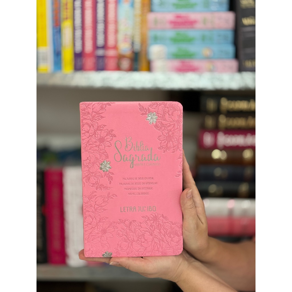 BÍBLIA L. JUMBO ARC FULL COLOR CAPA PU LUXO C/ HARPA - JARDIM ROSA