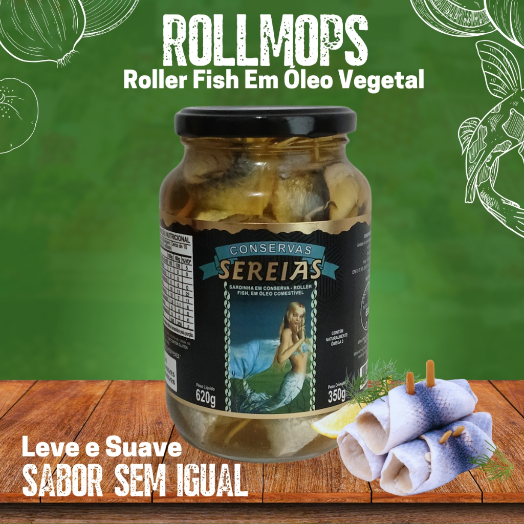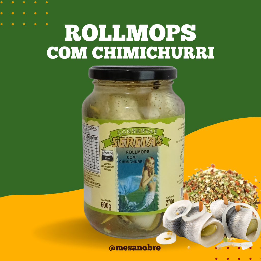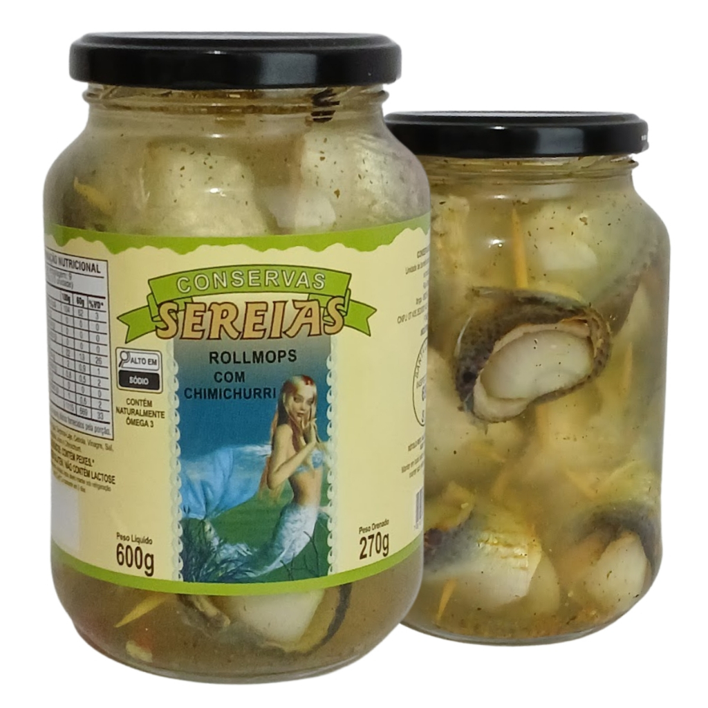 Rollmops Em Conserva Tradicional Chimichurri Óleo e Com Pepino Aperitivo Petisco Artesanal Sereias