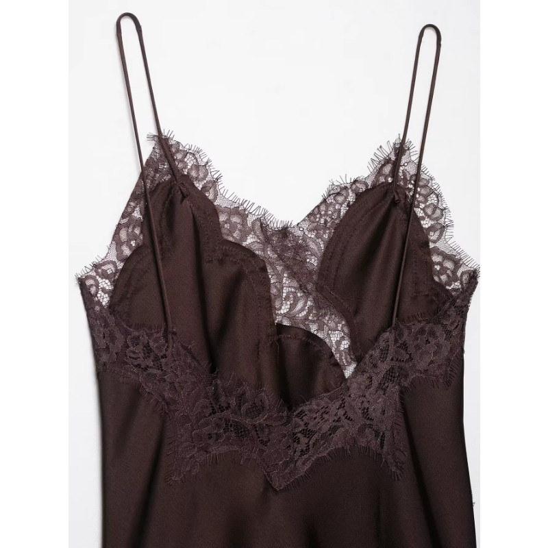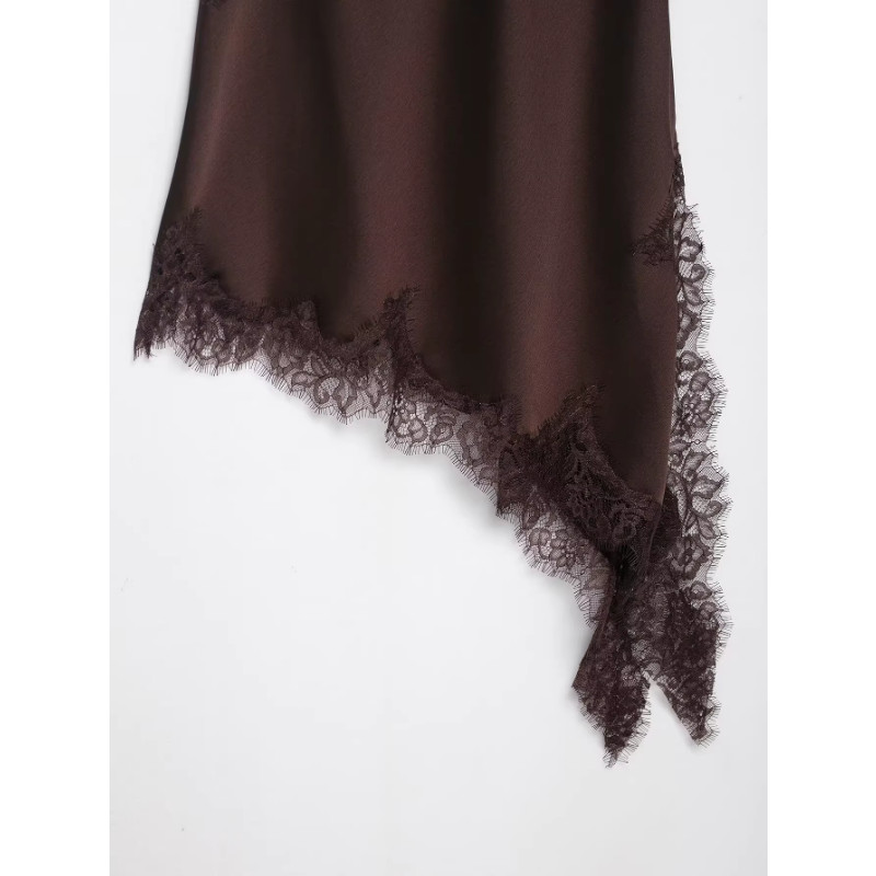 Estilo europeu americano feminino novo estilo 2025 moda cor sólida renda vestido assimétrico5919200