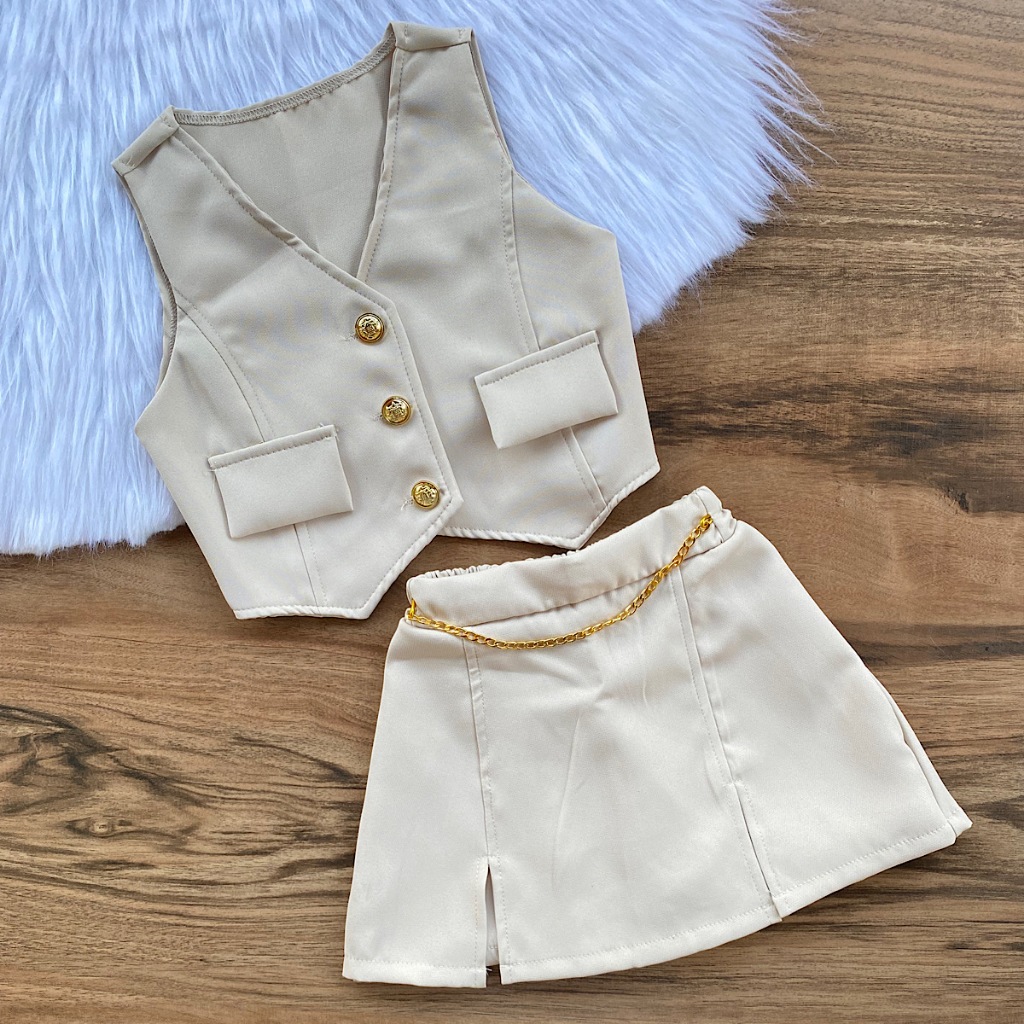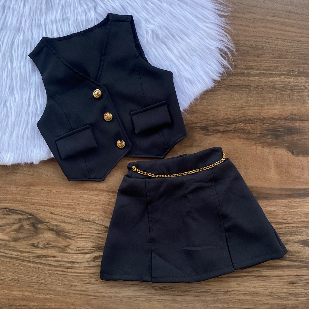 Conjunto Alfaiataria 4 ao 16 Anos Luxo Infantil E Juvenil Menina Colete e Short Saia Moda Blogueirinha