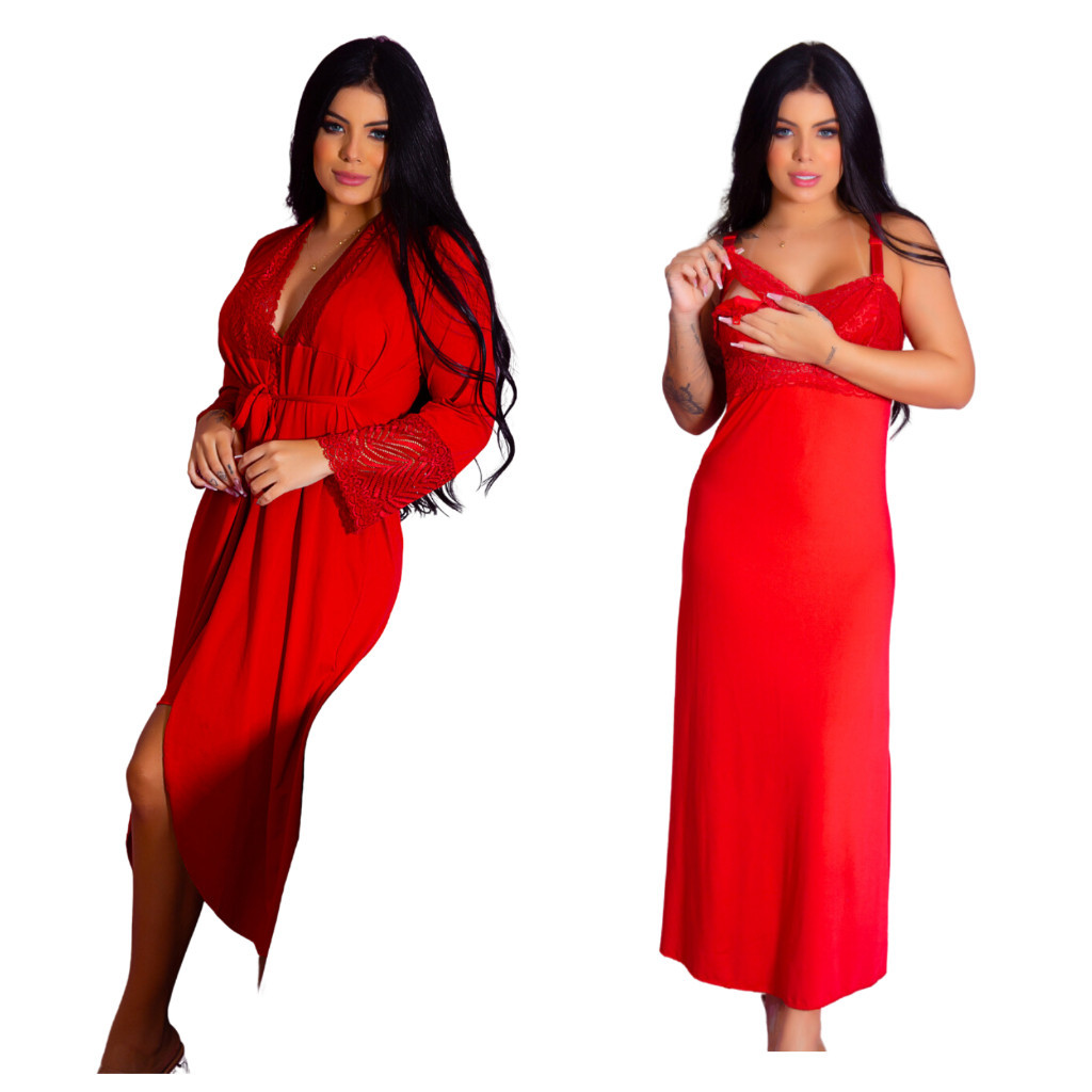 Kit Robe Roupão Longo e Camisola Amamentação Confortável Gestante Prática Maternidade