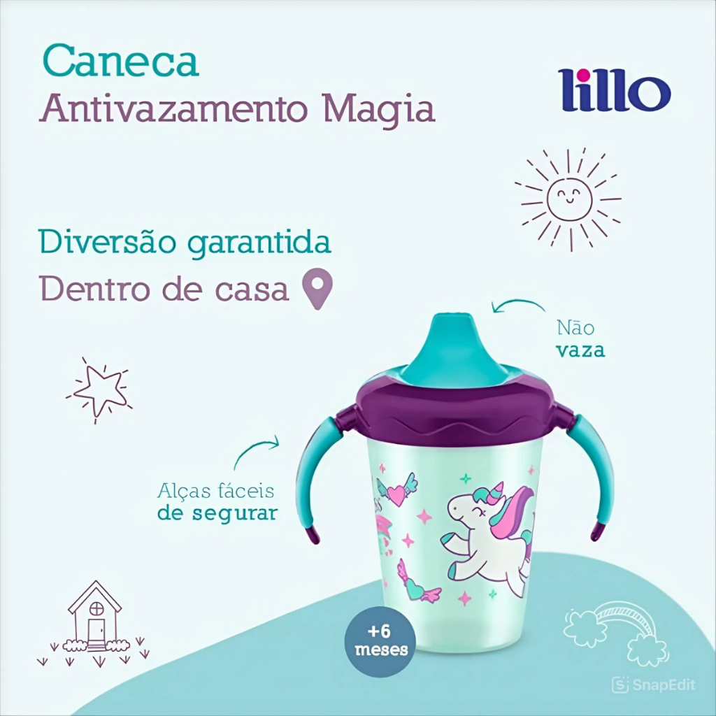Caneca de Treinamento Aprendizado com Alças Infantil Antivazamento Magia 207mL +6 Meses Lillo