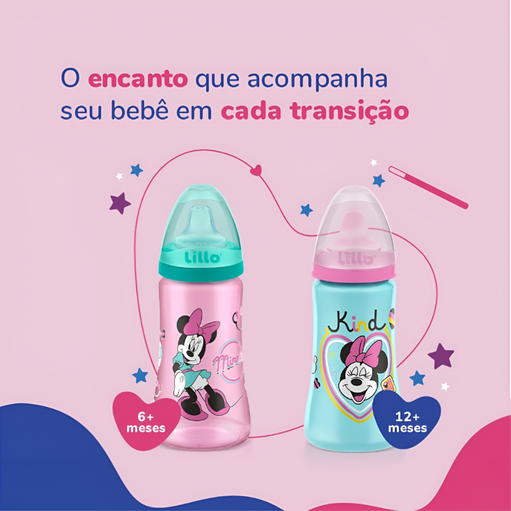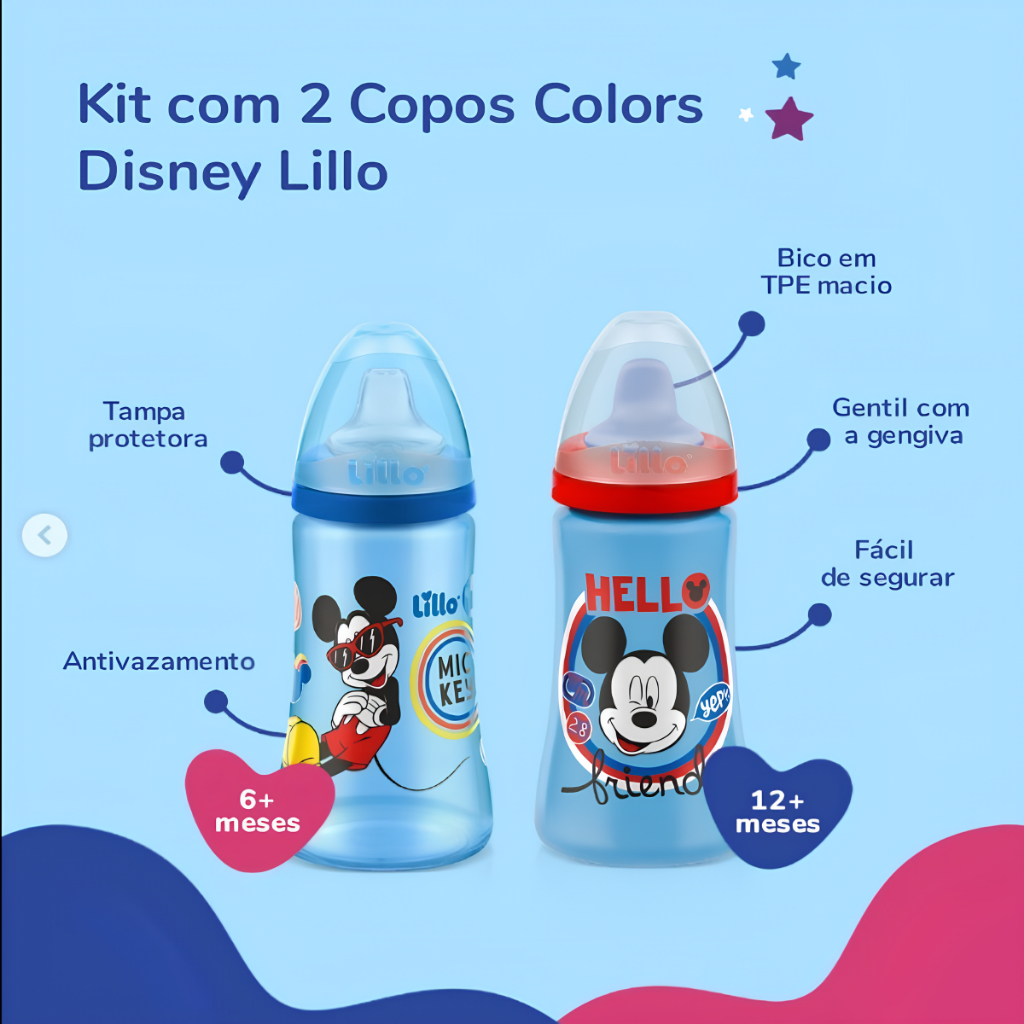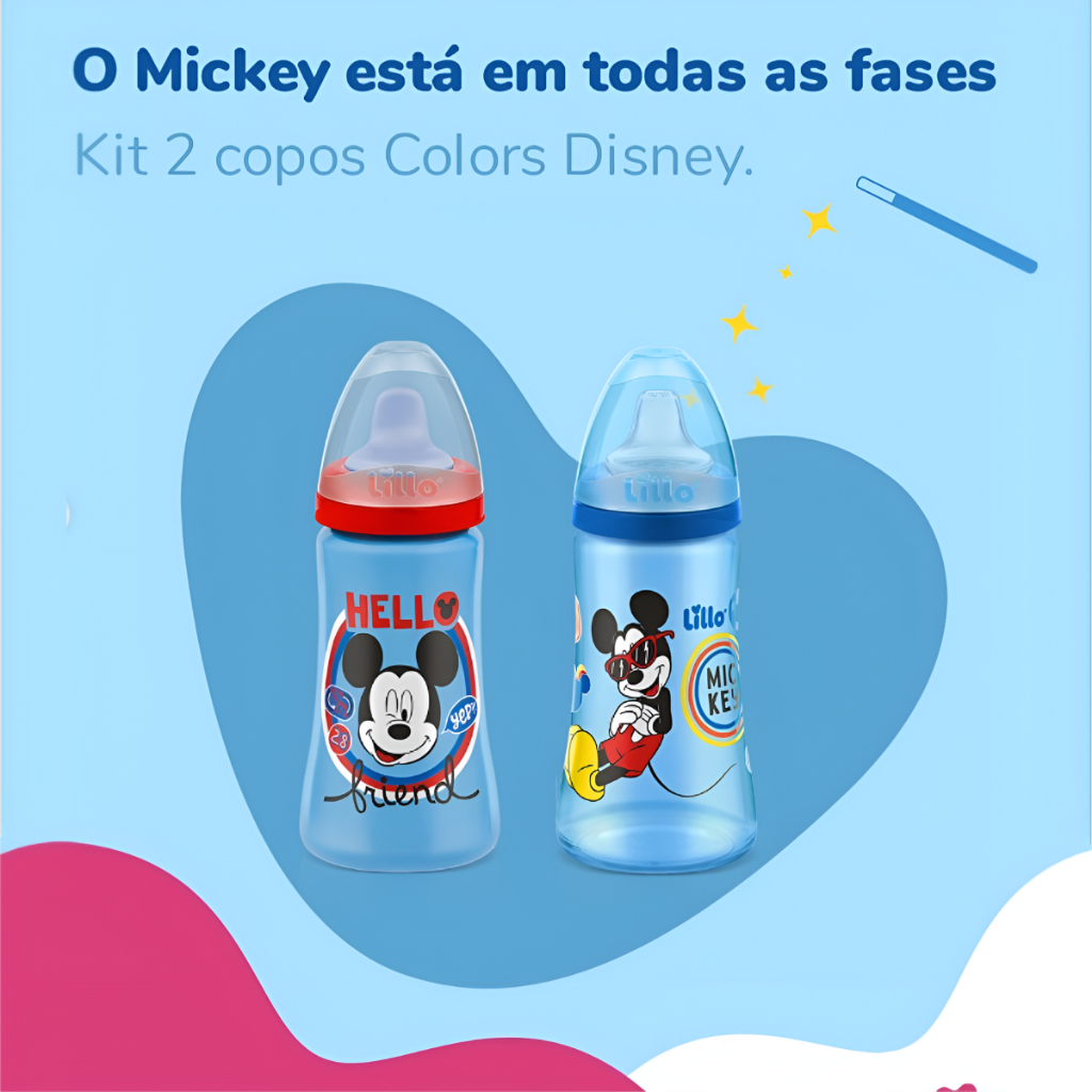 Kit 2 Copos de Treinamento Infantil Colors Mickey E Minnie Baby 300mL Lillo Silicone e TPE Disney