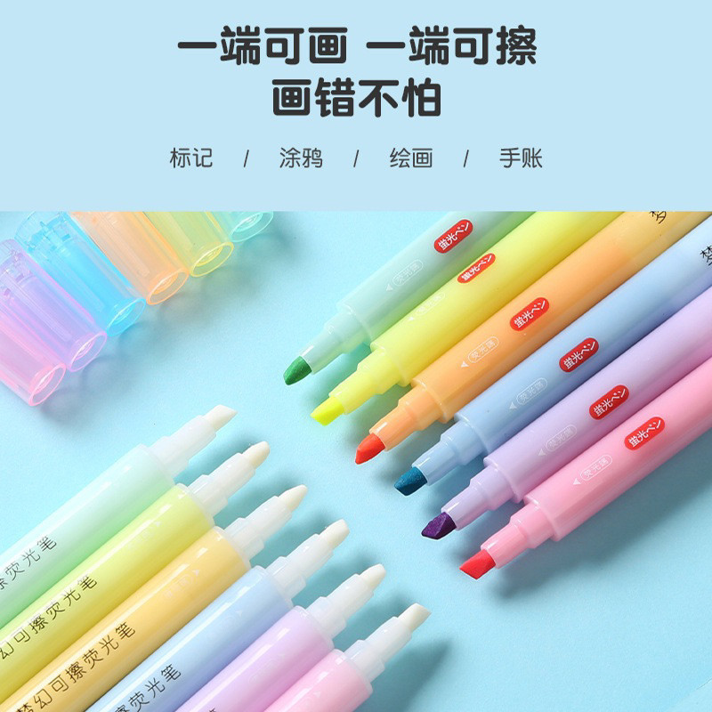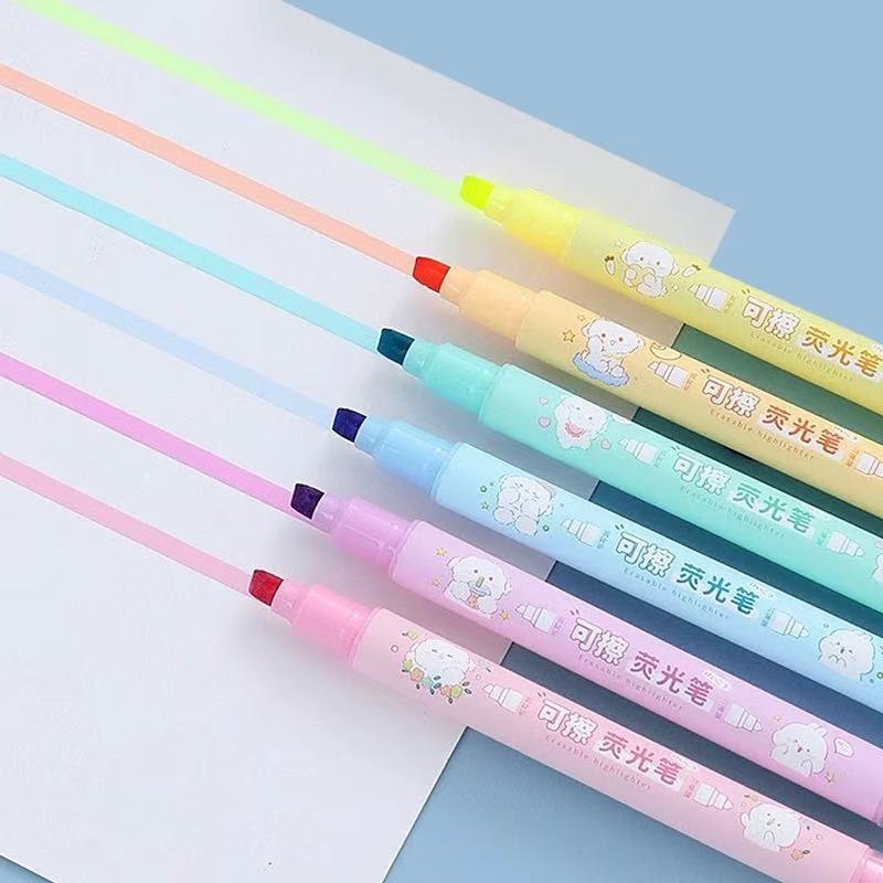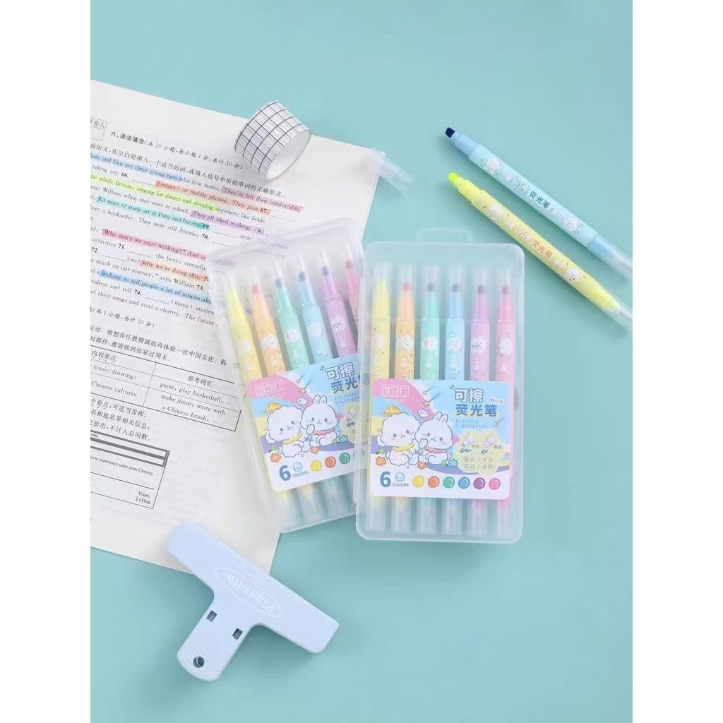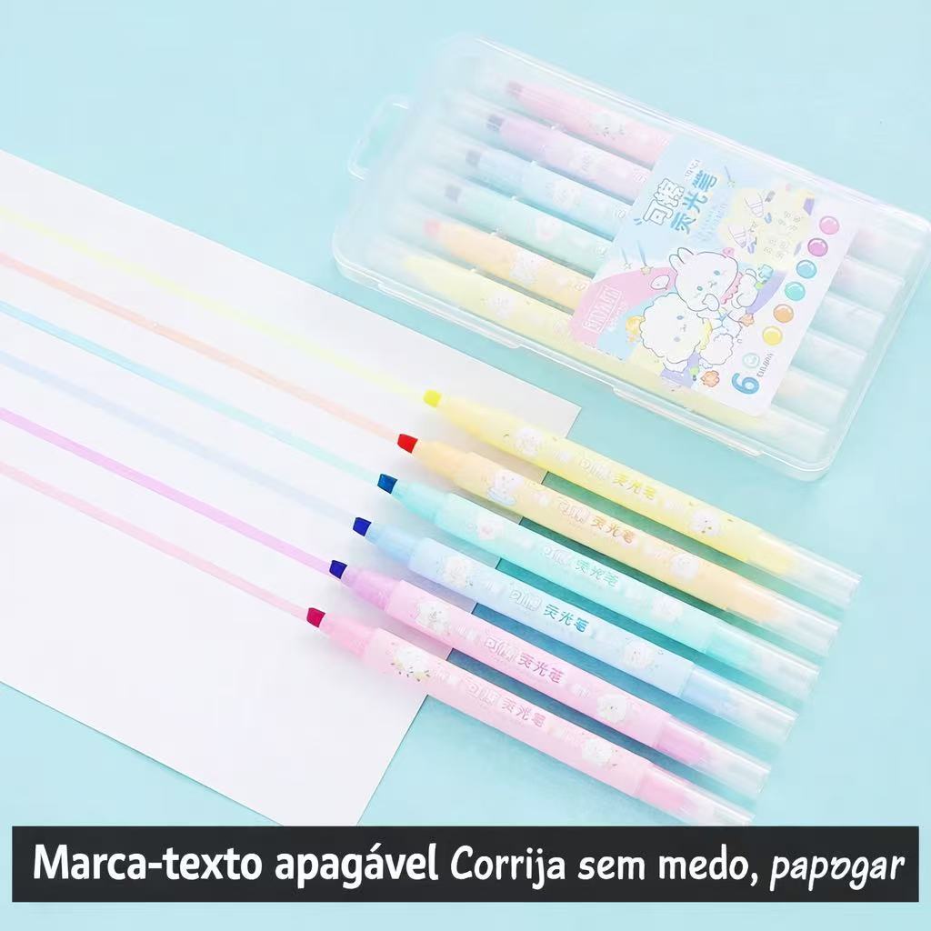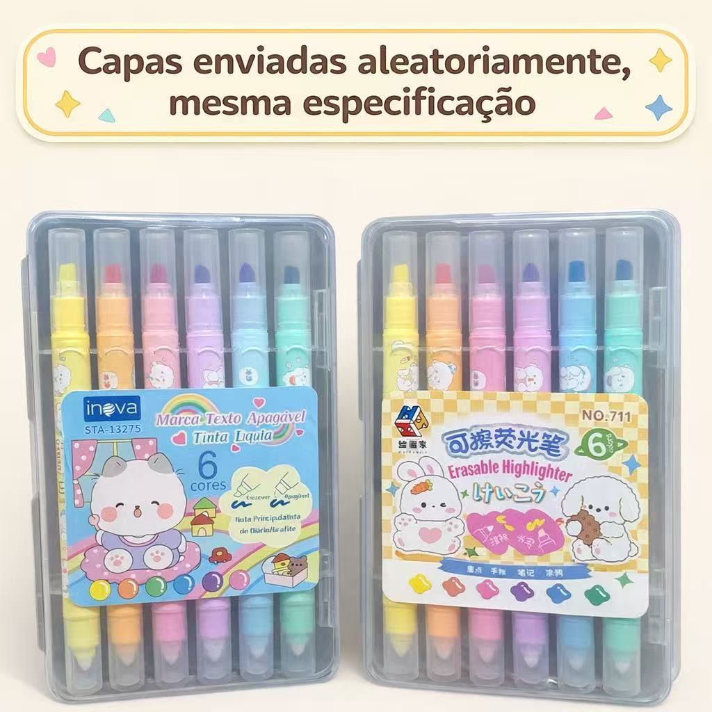 Caneta Kit com 6 Peças Marca Texto Apagável Com 6 cores duas pontas caneta destaque escolar Multicores