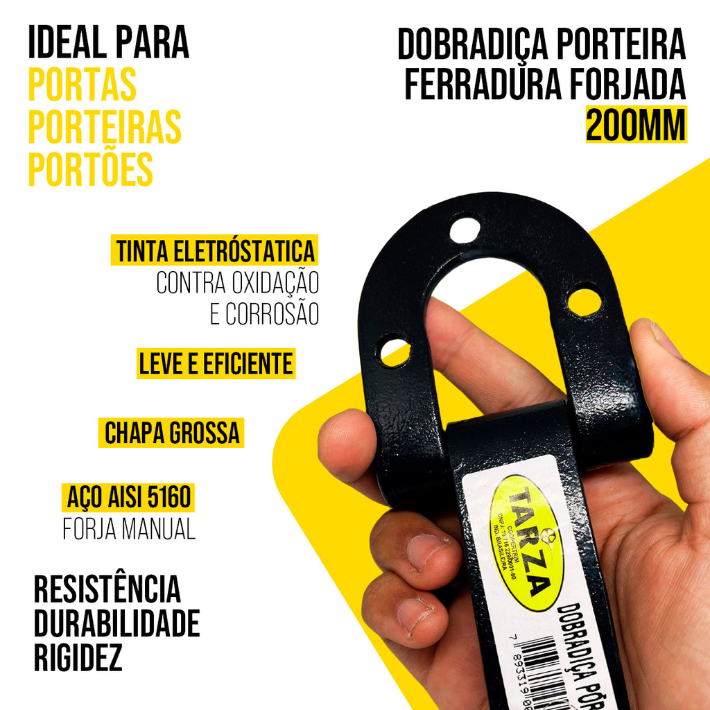 6 Dobradiça Para Porteira Ferradura Forjada 200mm Tarza