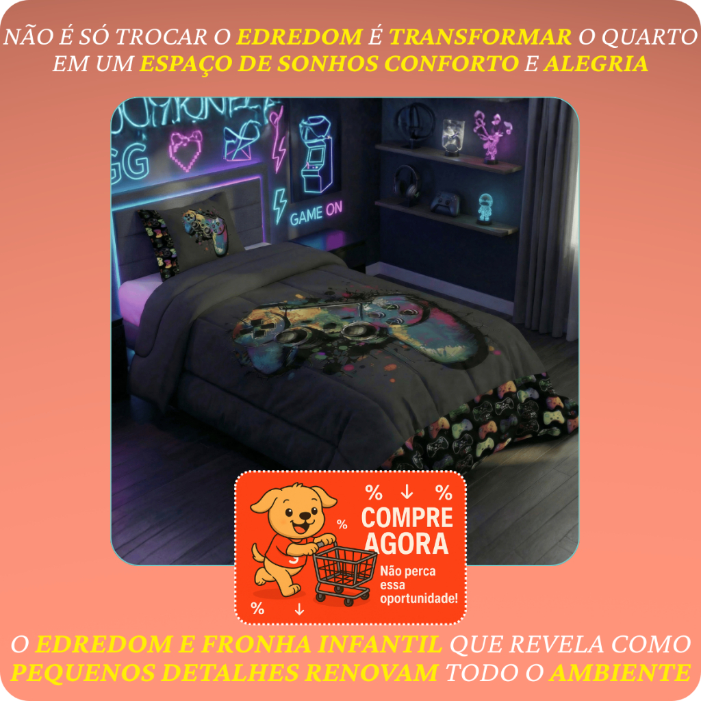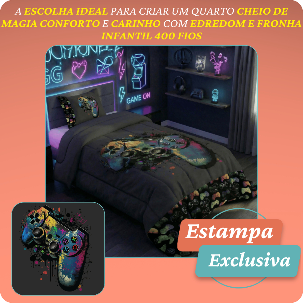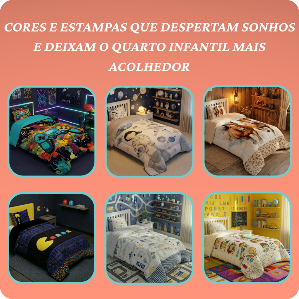 Edredom Solteiro 2 PC Infantil Premium 400 Fios Estampado Extra Quente Meninos e Meninas