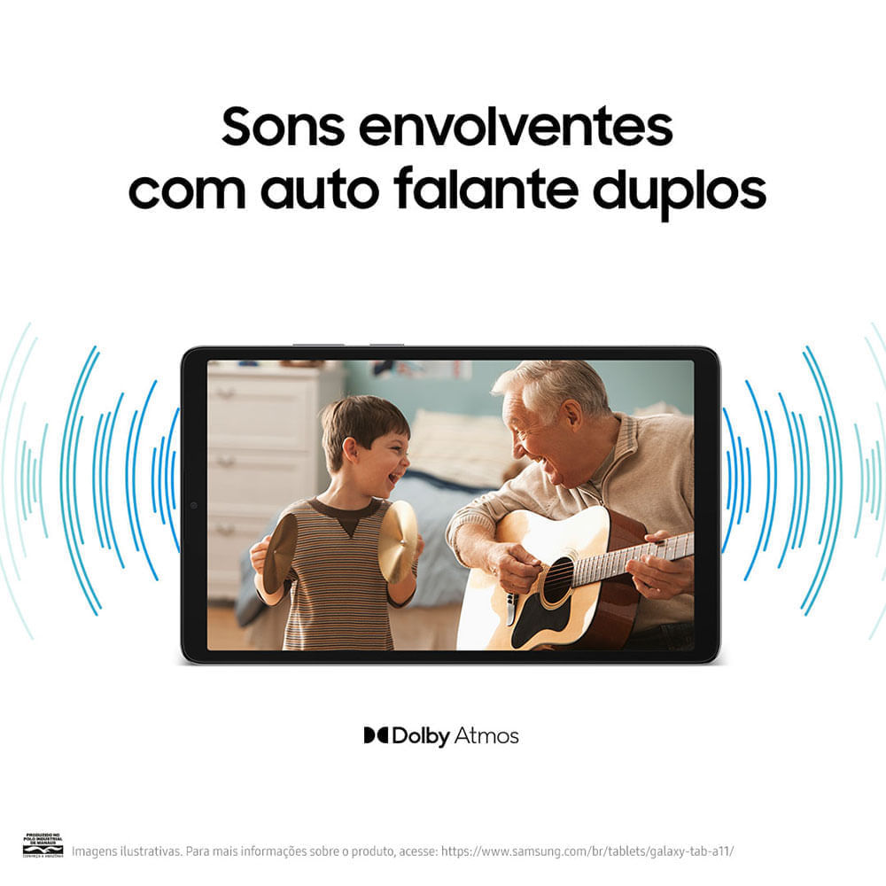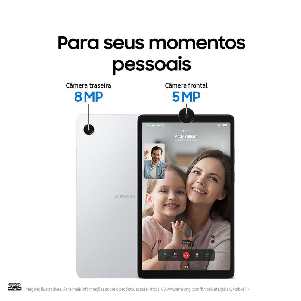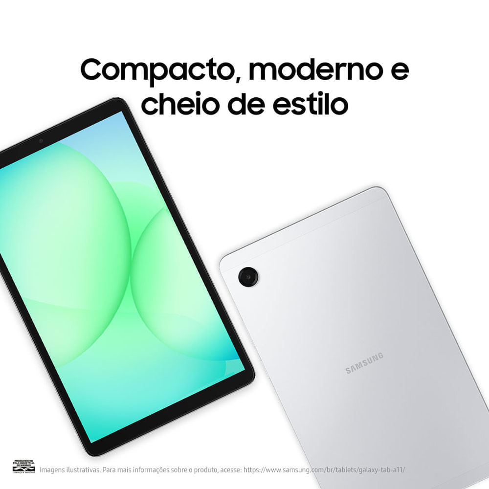 Galaxy Tab A11, 64GB, 4GB RAM, Tela de 8.7", Bateria 5.100mAh, Câmera frontal 5MP, Câmera traseira 8MP, WiFi