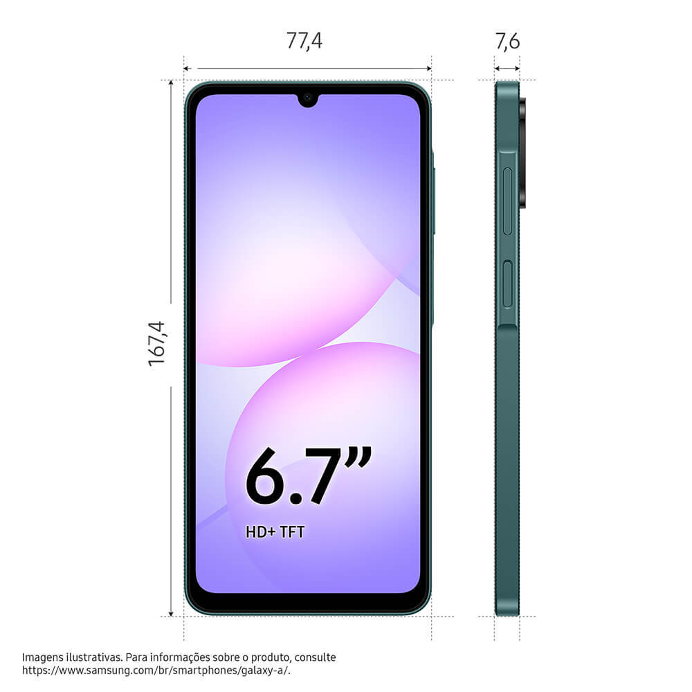 Celular Samsung Galaxy A07 128GB, 4GB, Câmera 50MP, Tela 6.7", Proteção IP54, Processador 6nm