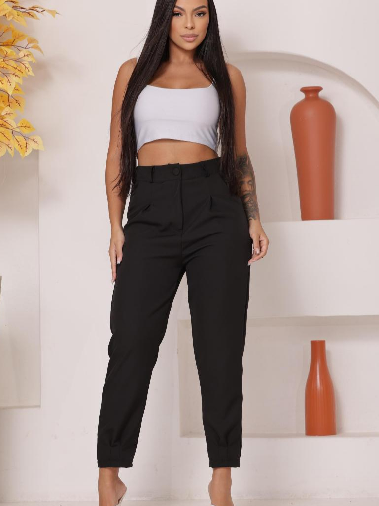 Calça Cenoura Jogger Alfaiataria Feminina Barra modelo 2026
