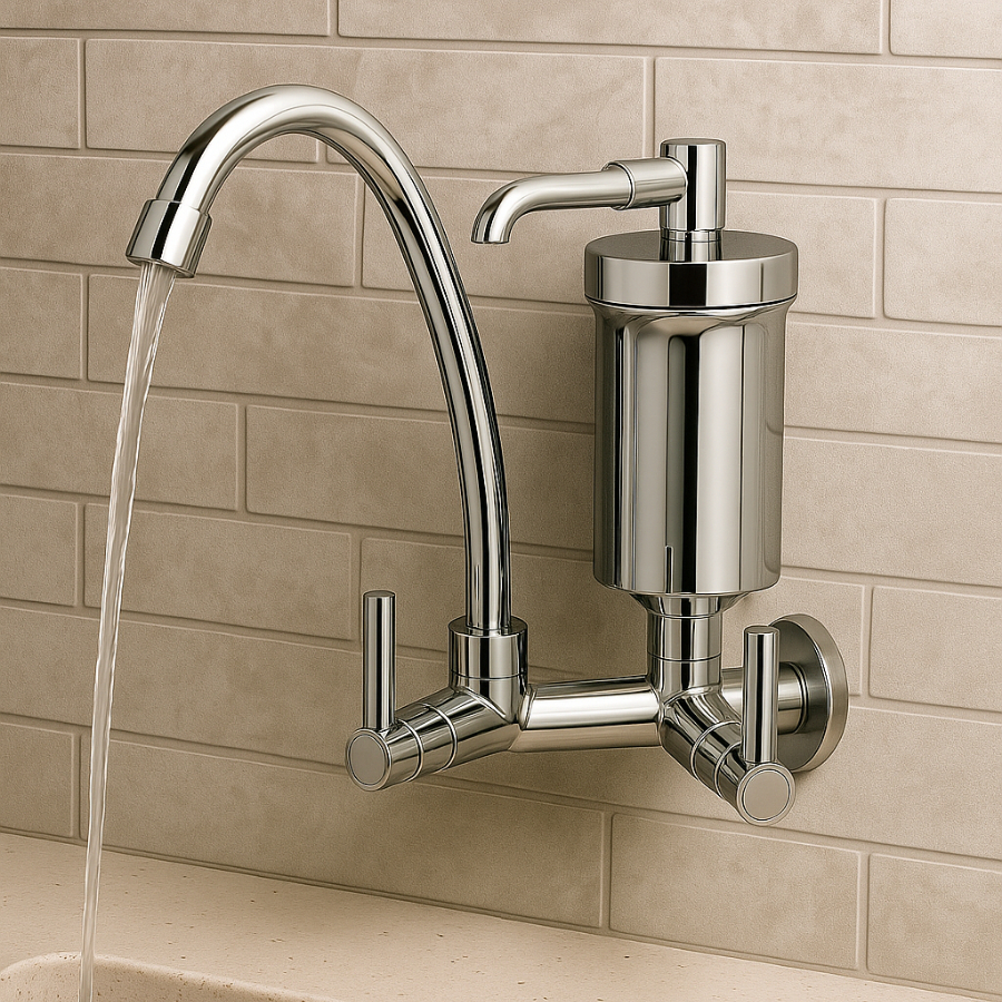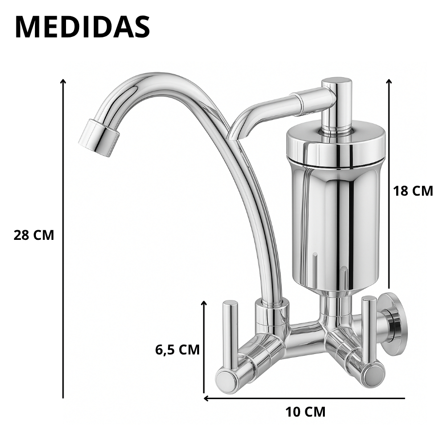 Torneira De Parede Com Filtro Cromada Gourmet Cozinha Bica Alta 360° Purificador De Água Luxo