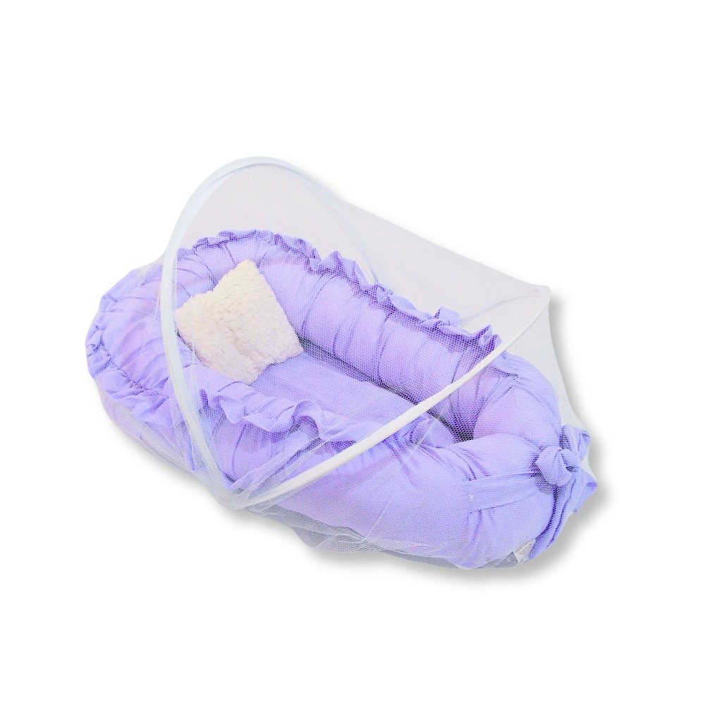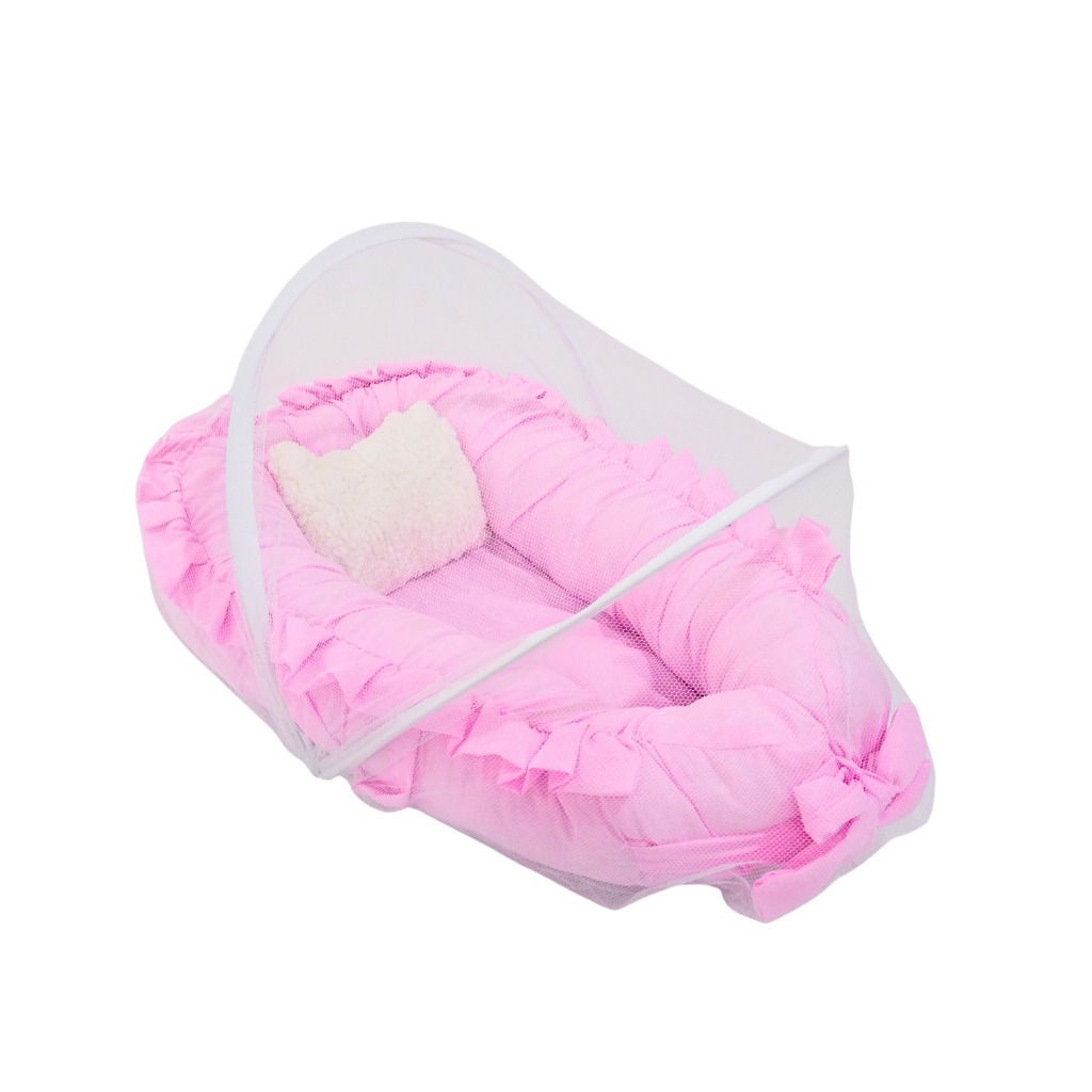 Ninho Redutor de Berço com Mosquiteiro - Liso com Babado