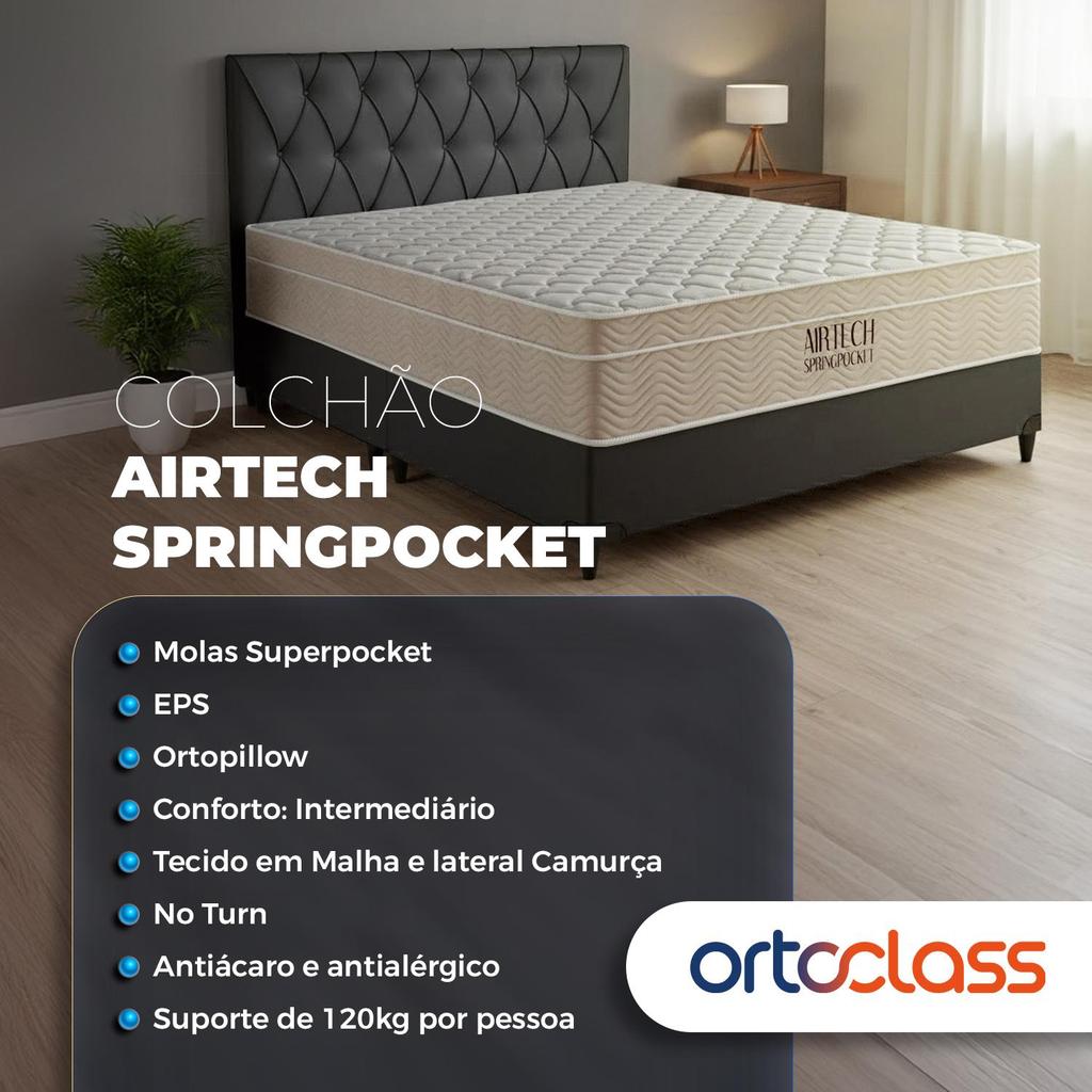 Cama Box e Colchão Airtech Molas Ensacadas(108x198)-Ortobom