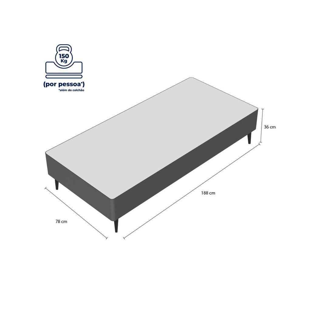 Base Sommier Camurça Cinza Solteiro (78x188x23) - Ortobom