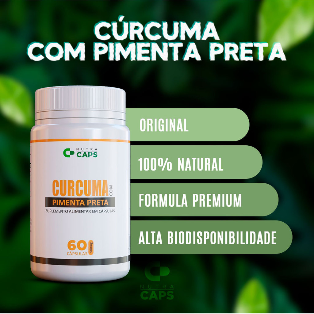 Suplemento Cúrcuma com Pімепtа Pгеtа - 60 Cáps 500mg | A Pimenta faz diferença, a escolha certa é a Preta