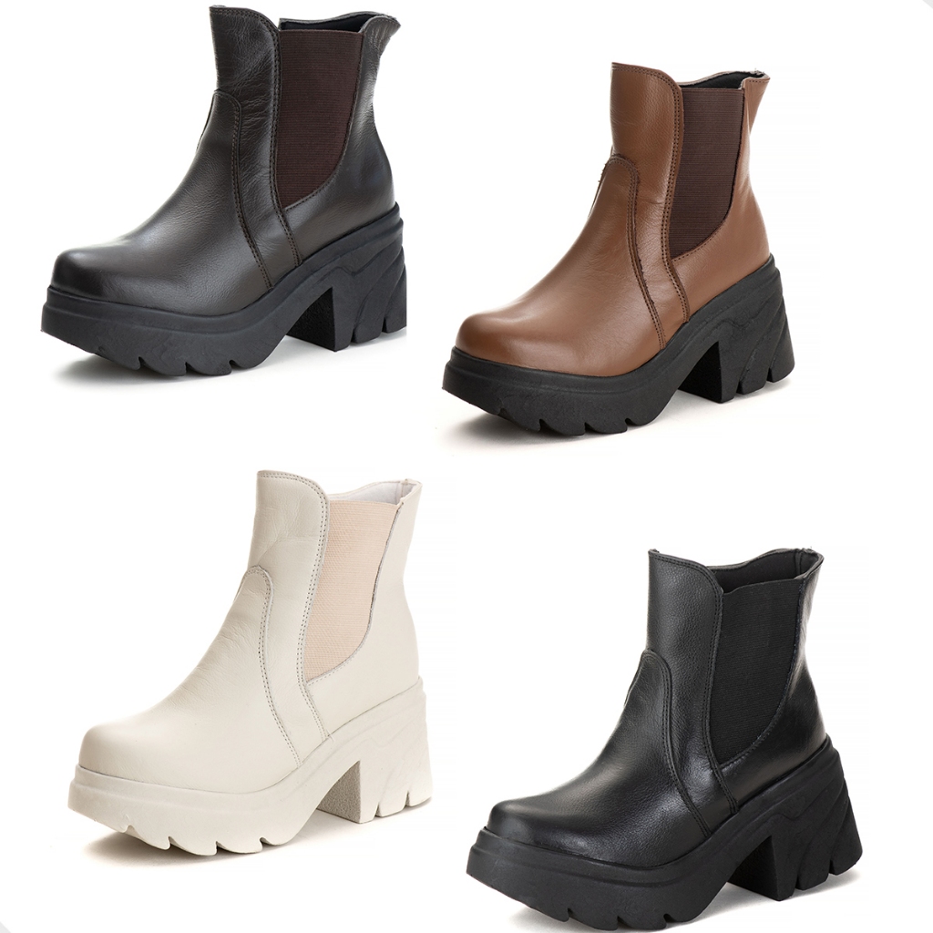 Bota Chealsea Feminina Cano Baixo Tratorado Couro Legitimo
