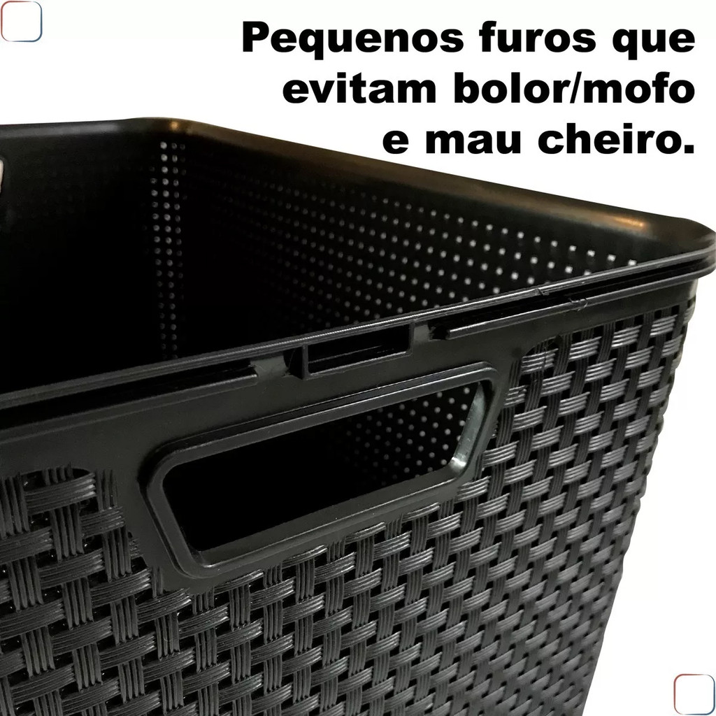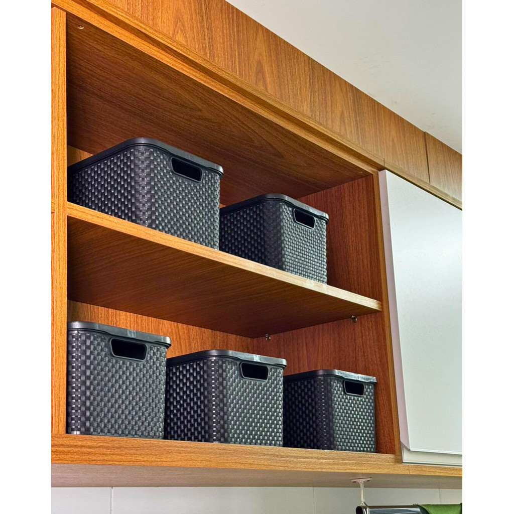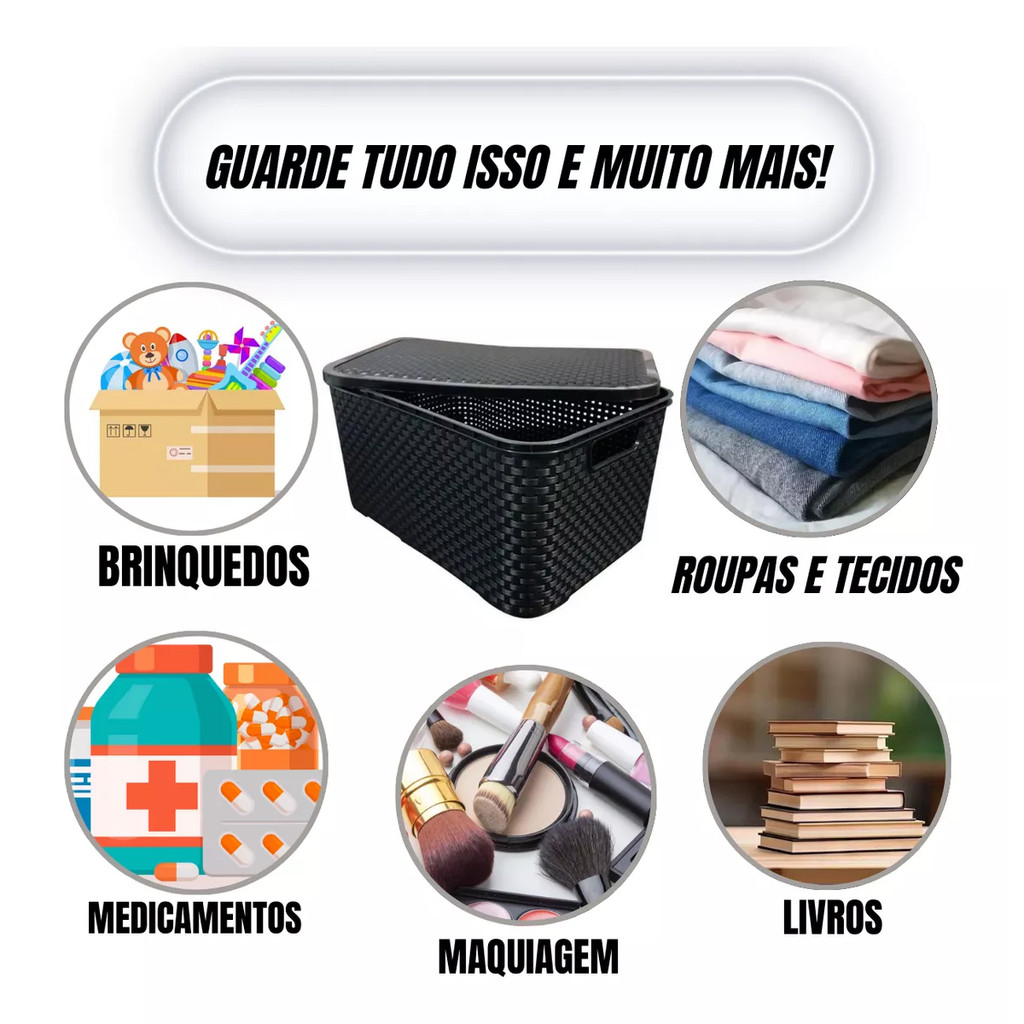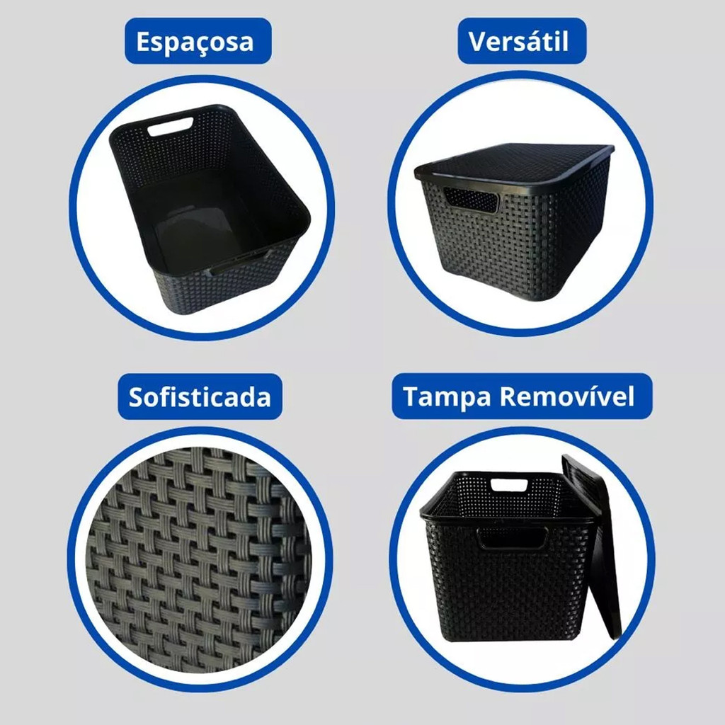 Caixa Organizadora 7 Litros Rattan Preta C/tampa 123Organizei TPTF