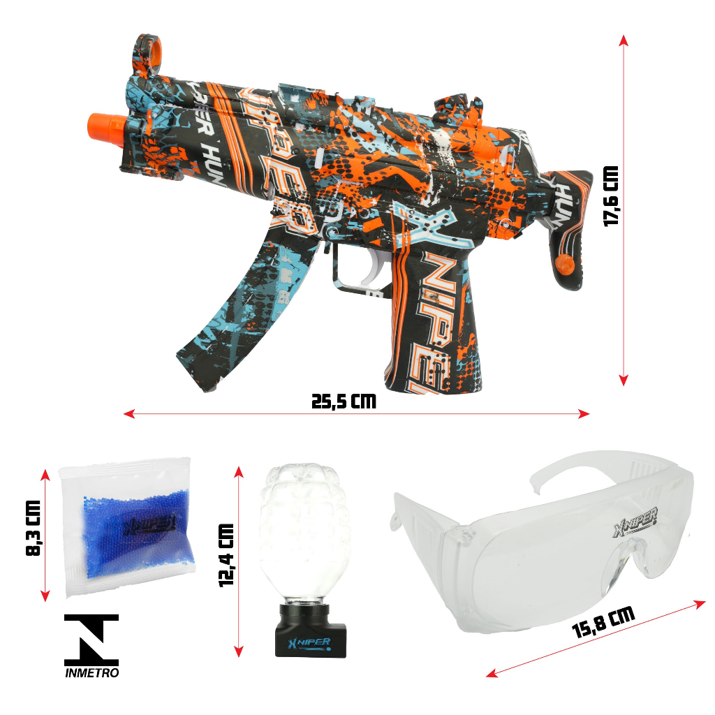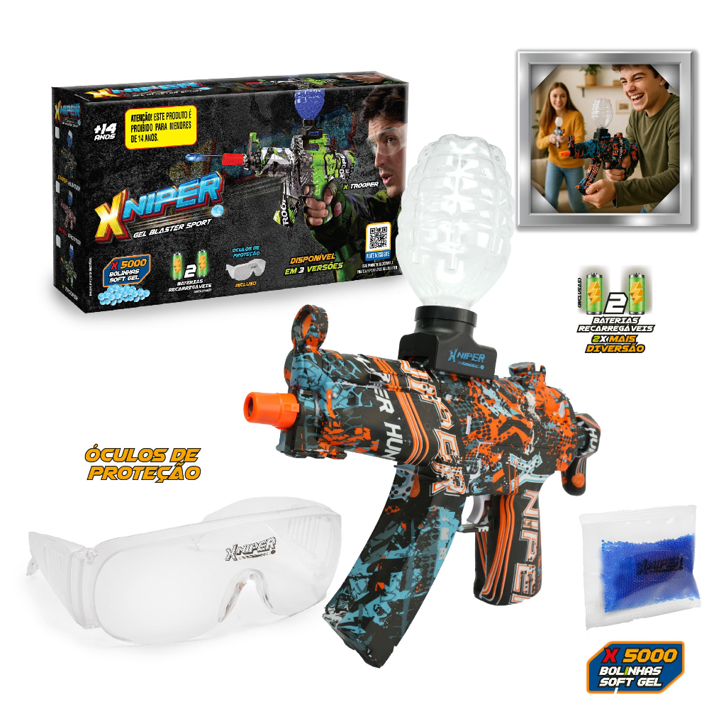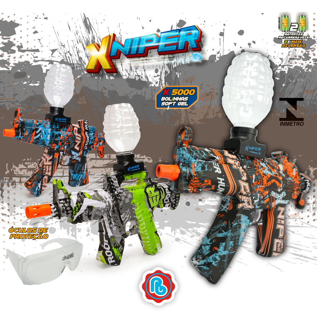 Lançador Xniper Cyber Hunter Gel Blaster Bolinhas Coloridas Com Munição Polibrinq