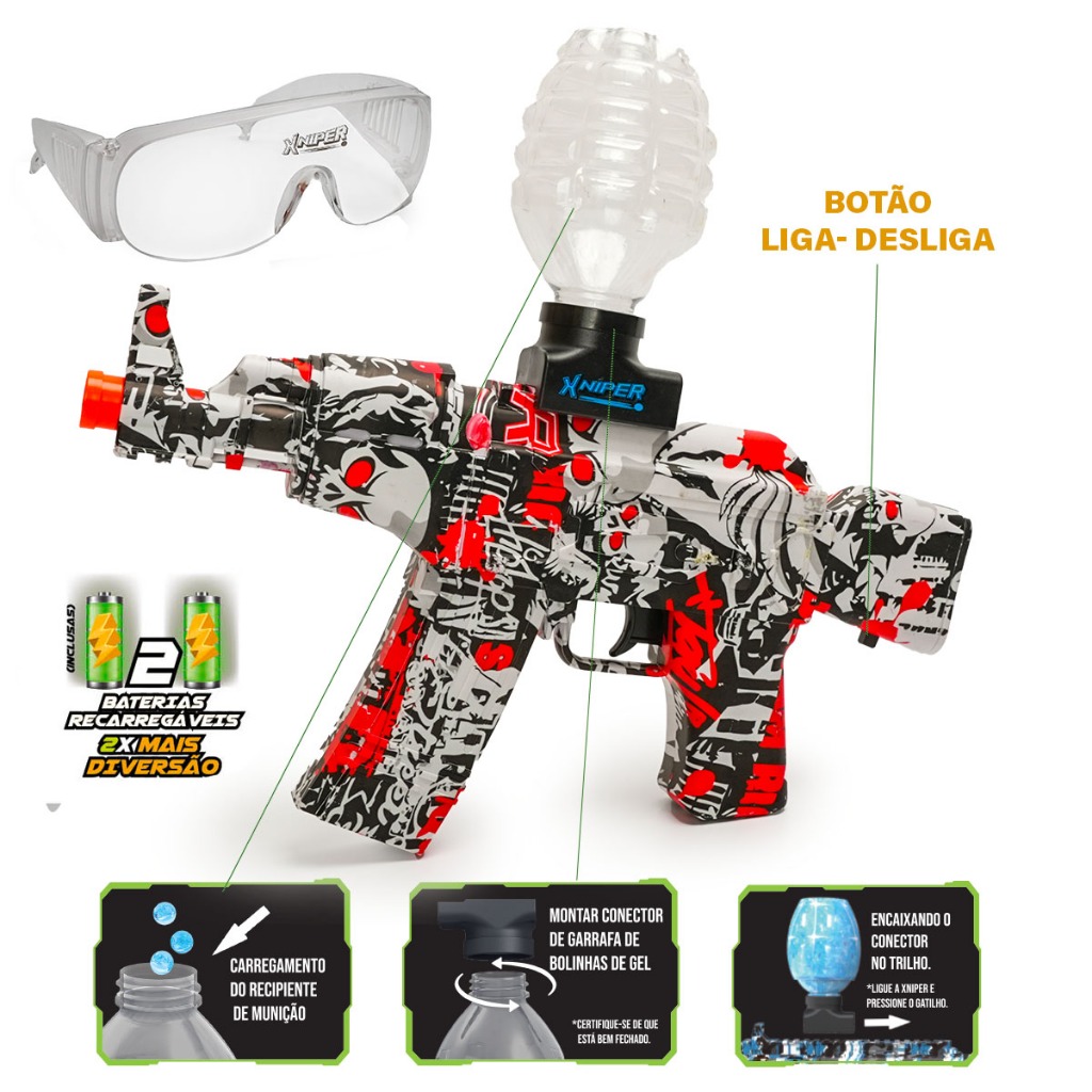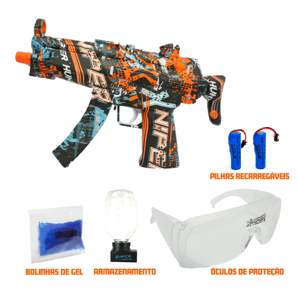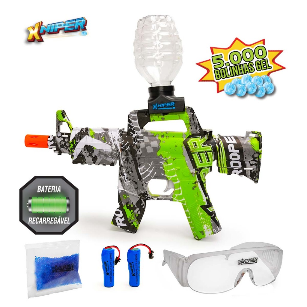 Lançador Xniper Cyber Hunter Gel Blaster Bolinhas Coloridas Com Munição Polibrinq