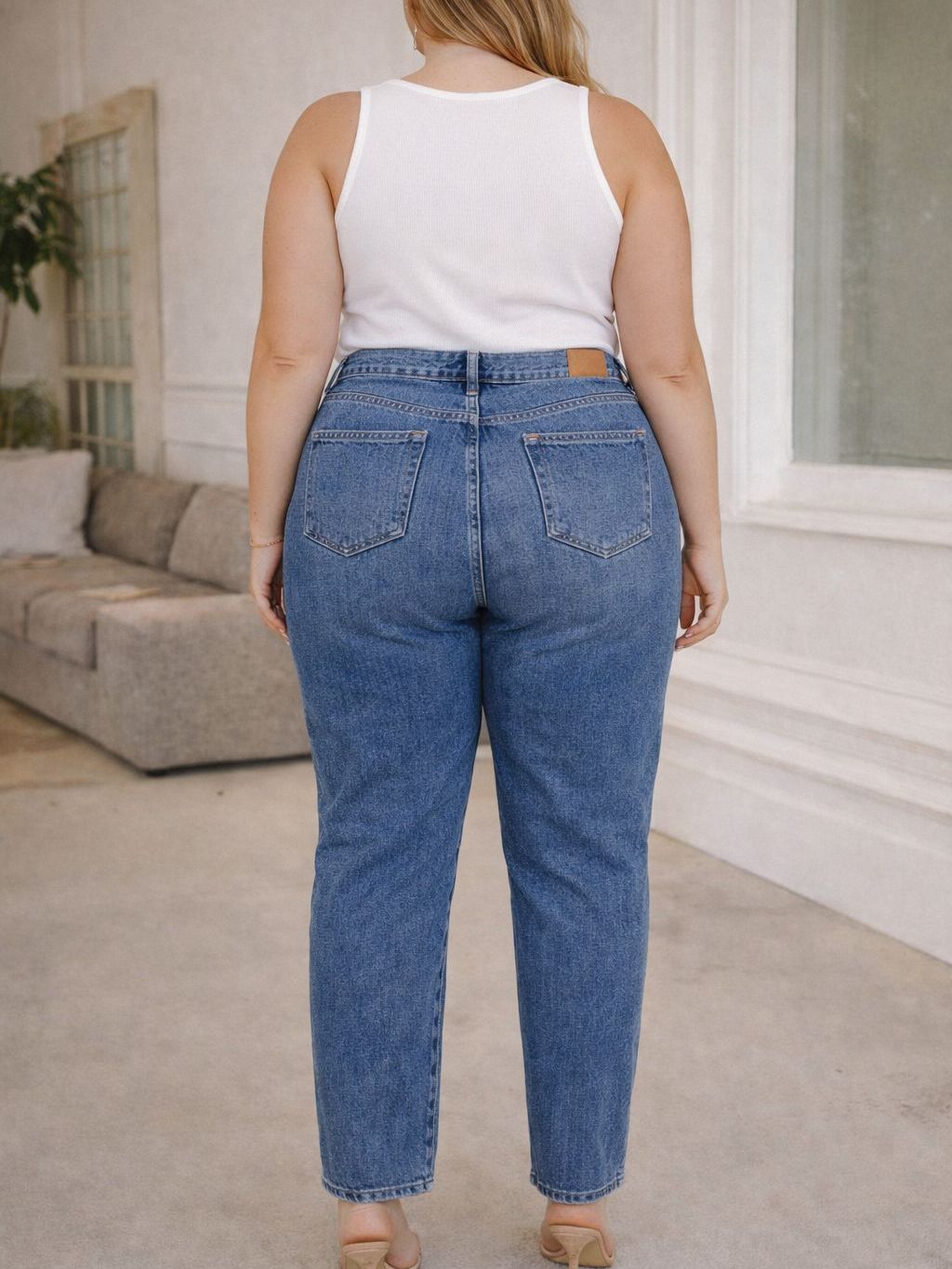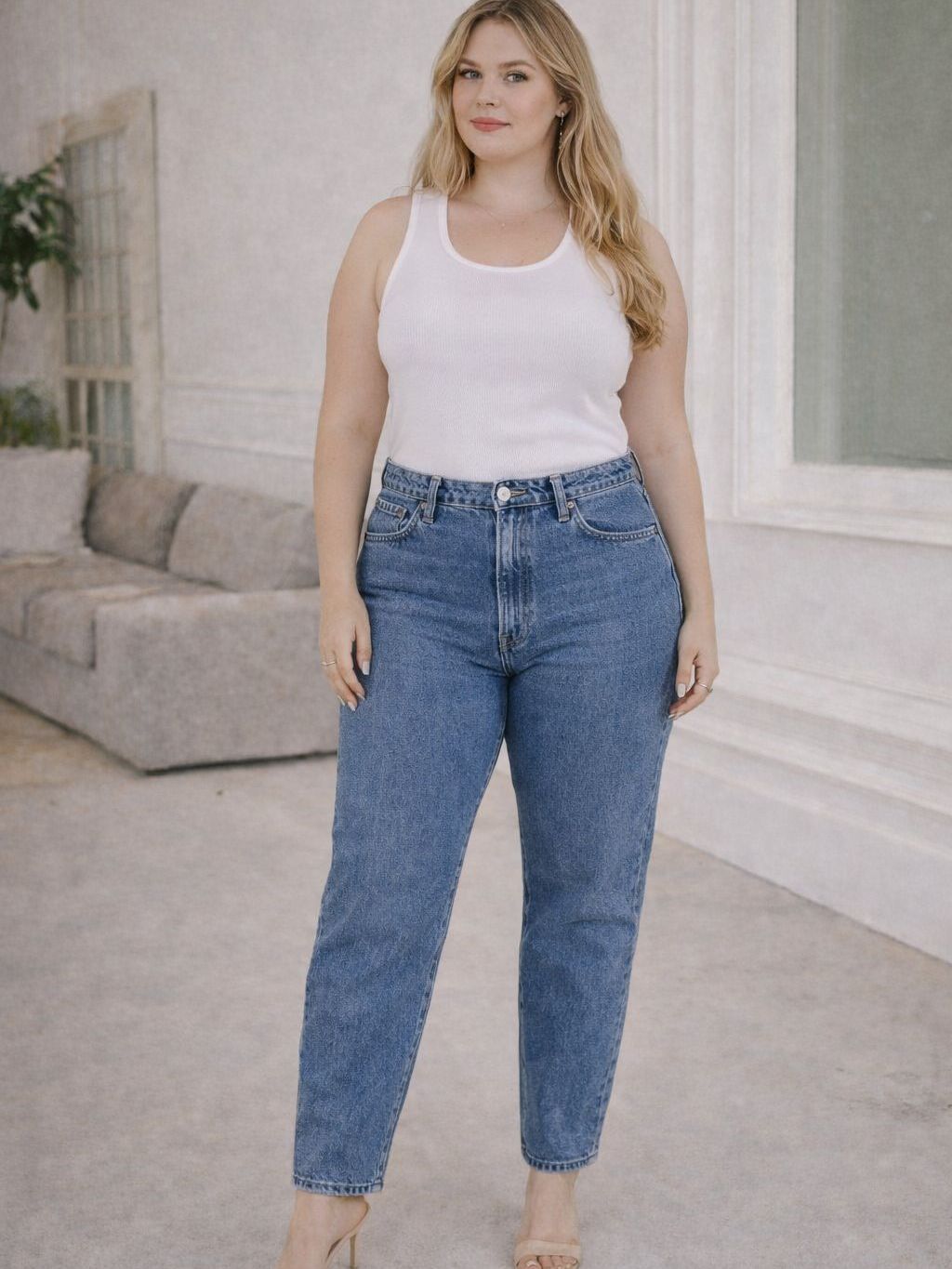 Calça Mom Feminina Plus Size Cintura Alta com Elástico na Cintura