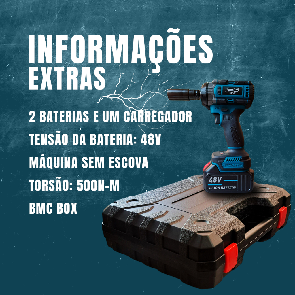 Chave Elétrica para Roda Parafusadeira Furadeira de Impacto 48V 500Nm Alta Potência Ferramenta