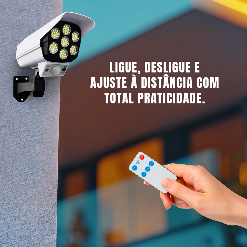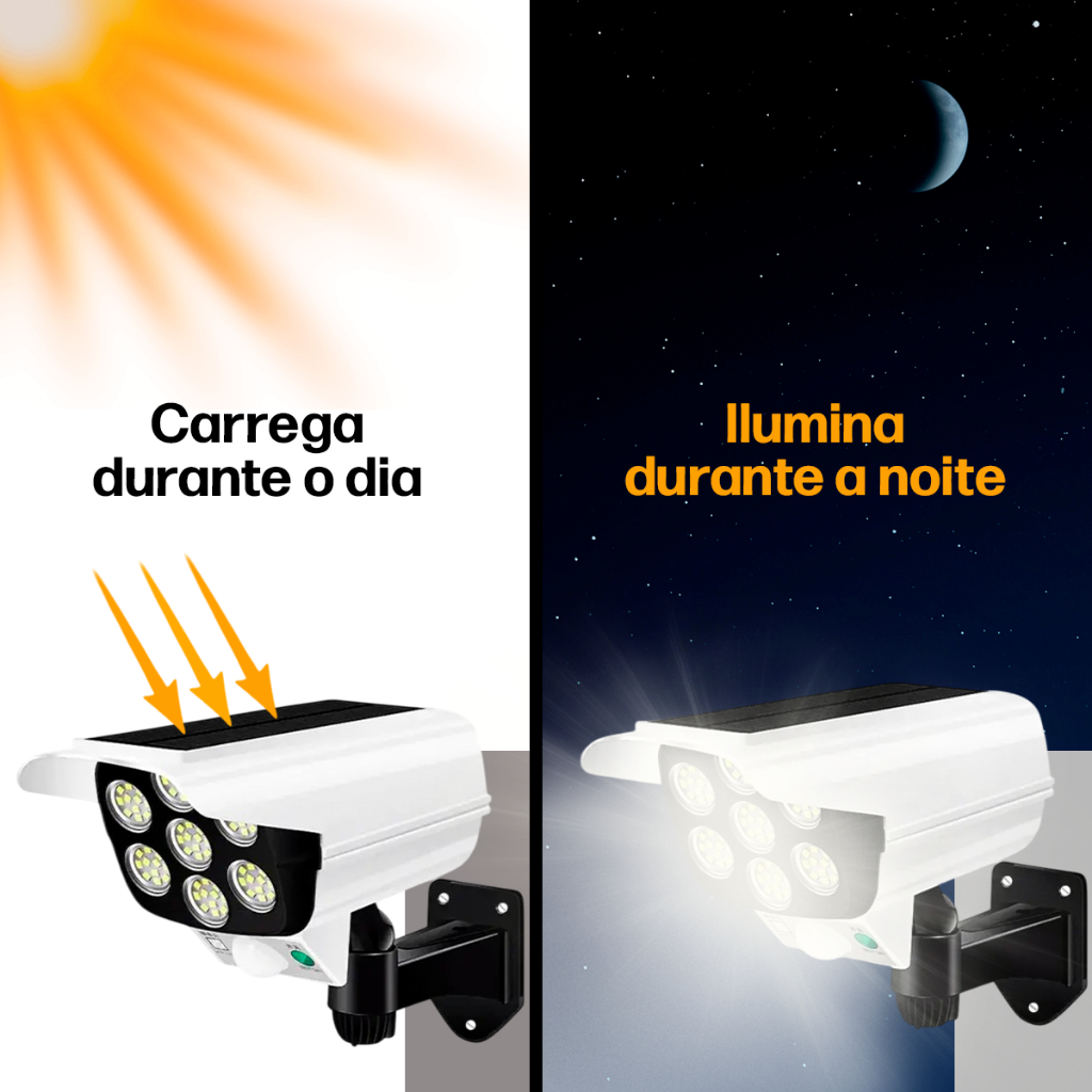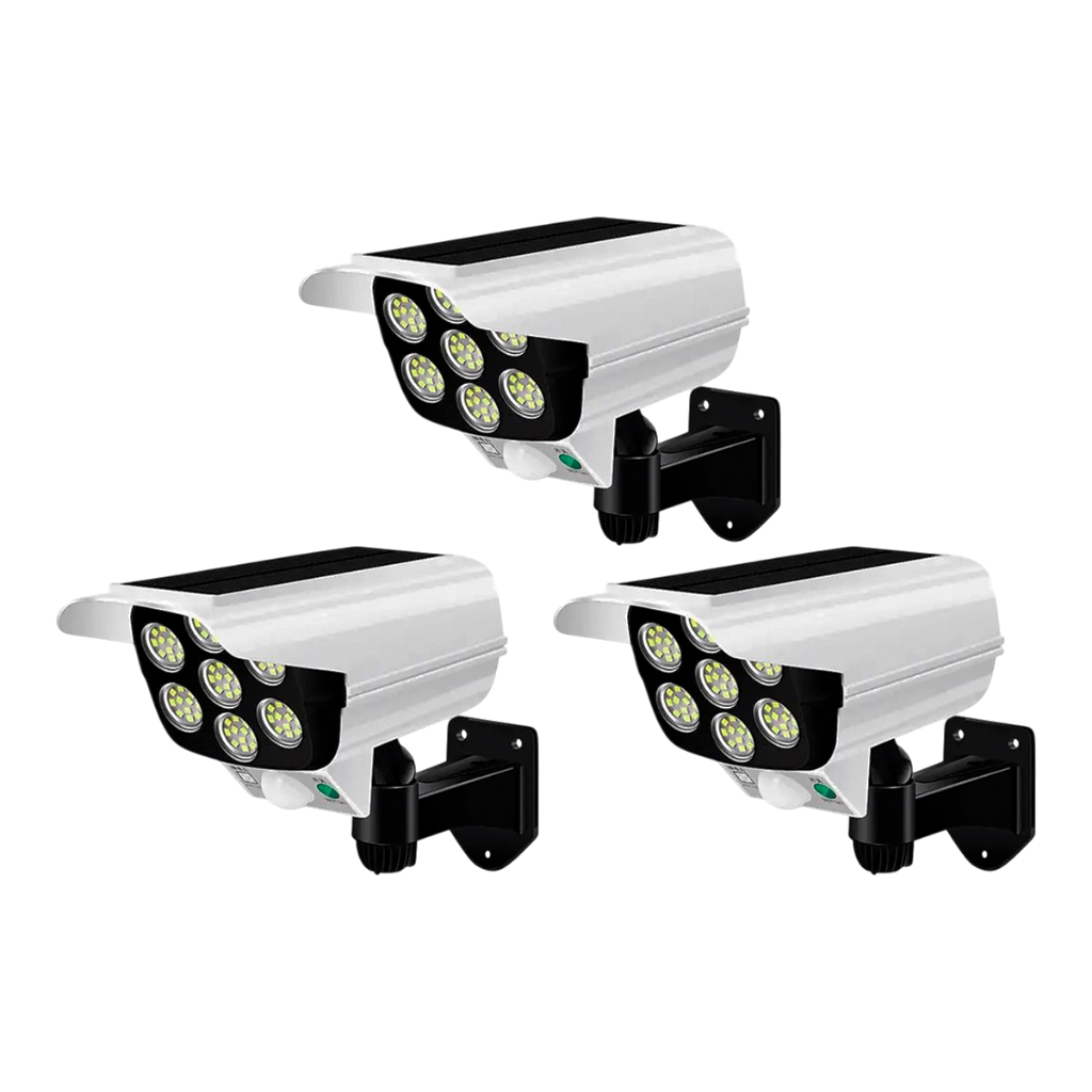Refletor Solar com LED Sensor de Movimento Câmera Falsa IP66 Externa Luz Fria Prova Dágua